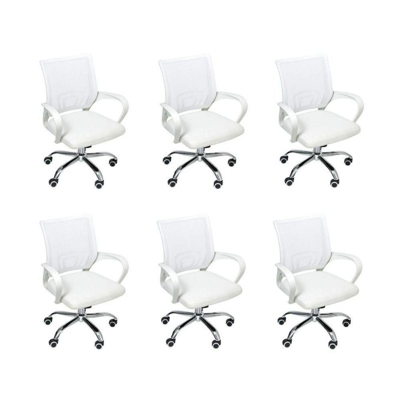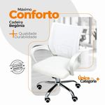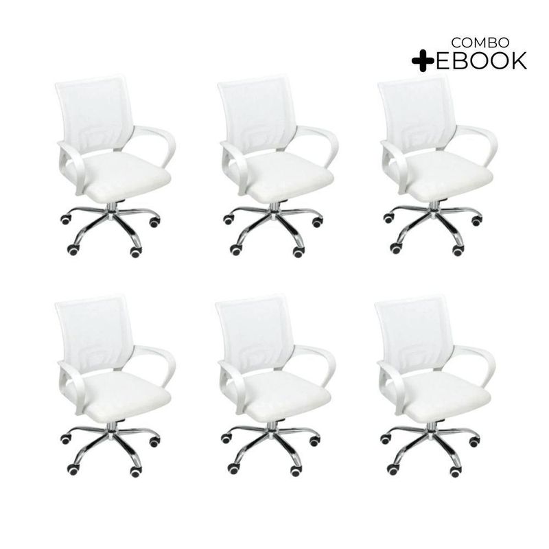 Kit 6 Cadeiras De Escritório Begonia Tela Mesh Ergonômico BrancoCadeira De Escritório Tela Mesh Begonia Ergonômica GiratóriaA escolha de uma cadeira adequada desempenha um papel crucial na prevenção de possíveis lesões. Com a cadeira Begônia, você garante o conforto e bem-estar essenciais para suas atividades diárias. Além disso, sua versatilidade permite que ela se encaixe perfeitamente em diversos ambientes, seja em casa, no escritório ou home office, proporcionando um toque moderno e harmonioso. Personalização para seu confortoAproveite ao máximo o ajuste de altura desta cadeira. Isso lhe permitirá adaptar a posição do seu tronco em relação à mesa, proporcionando um nível de conforto específico para suas necessidades individuais. Promovendo o bem-estarOs apoios de braço foram cuidadosamente projetados para melhorar sua postura enquanto você escreve, facilitando a incorporação natural quando necessário. Mobilidade sem esforçoAs rodas integradas garantem facilidade de movimento em seu espaço. Você não só poderá movê-la com tranquilidade, mas também desfrutará da conveniência das rotações de 360º, eliminando a necessidade de reajustar sua posição ou deslocar-se fisicamente. Escolha a cadeira Begônia para elevar seu conforto e eficiência, enquanto cuida do seu corpo e do seu ambiente de trabalho, estudo ou lazer.Acompanha E-book Exclusivo! AlturaTotal: 100-90 cmBraço até o chão: 75-63 cmAssento até o chão: 58-46 cmEncosto: 48 cmBraço: 28 cm Largura1 Perna: 25 cm2 Pernas: 50 cmAssento: 45 cmEncosto: 40,5 cmBraço: 4,5 cmDe um braço ao outro: 54 cm ComprimentoEncosto: 2 cmAssento: 47,5 cmBraço: 30 cmPeso: 5,5 kgEstrutura Estrutura: Nylon e aço cromado Revestimento: Nylon, Tela Mesh Braço: Polipropileno Assento: Madeira multilaminada Peso máximo recomendado: 120 Kg