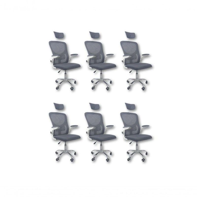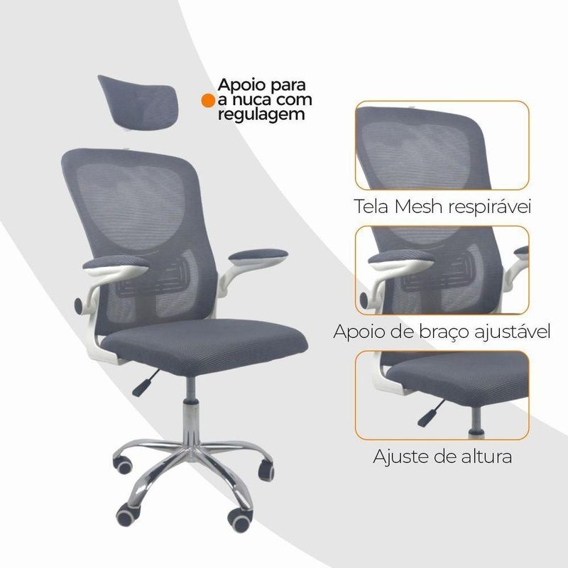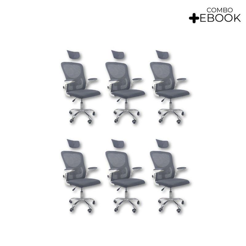 Kit 6 Cadeiras De Escritório Diretor Oficial Vegas Com Apoio Cinza E BrancoCadeira Diretor Vegas – Design, Conforto e Sofisticação para Seu EscritórioA Cadeira Diretor Vegas é a escolha ideal para quem busca elegância, conforto e funcionalidade no ambiente corporativo ou home office. Desenvolvida com design moderno e estrutura resistente, ela oferece suporte ergonômico completo, garantindo bem-estar e produtividade durante longas jornadas de trabalho.Com encosto alto em Tela Mesh respirável, a Vegas proporciona ventilação constante e conforto térmico. Seu sistema de regulagem permite ajustes personalizados, enquanto o acabamento em aço cromado adiciona um toque de sofisticação ao seu espaço de trabalho.Diferenciais do Produto:Design Executivo e Elegante: Combina estilo moderno com acabamento refinado.Encosto Ergonômico: Revestido em tela Mesh respirável, promove conforto e postura adequada.Apoio de Cabeça Ajustável: Suporte cervical para conforto prolongado.Apoio Lombar Integrado: Mantém a postura correta, reduzindo a fadiga.Apoio de Braços Retrátil com Elevação: Versatilidade e praticidade no uso diário.Ajuste de Altura com Pistão a Gás: Personalize a posição ideal de acordo com sua estatura.Base Giratória em Aço Cromado: Alta resistência, durabilidade e um visual sofisticado.Rodas de Nylon Silenciosas: Mobilidade suave e segura em diferentes superfícies.Mecanismo Pneumático de Ajuste: Permite regulagens precisas com facilidade.Extras: Acompanha e-book exclusivo.Especificações Técnicas:Modelo: VegasMarca: Oficial WebshopLinha: DiretorTipo de Cadeira: DiretorMaterial da Estrutura: Aço cromado e polipropileno reforçadoMaterial do Encosto: Tela Mesh respirávelMaterial do Assento: Espuma de alta densidade revestida em tecido poliésterPeso Máximo Suportado: 120 kgRecursos e Funcionalidades:Ergonômica: SimGiratória: SimAjuste de Altura: Sim (pistão a gás)Apoio de Cabeça: Sim (ajustável)Apoio Lombar: SimApoio de Braços: Sim (retrátil e com elevação)Encosto Reclinável: SimRodízios: Sim (nylon silencioso)Dimensões do Produto:Altura Total (mín./máx.): 94 cm a 126 cmAltura do Assento (mín./máx.): 41 cm a 50 cmAltura do Encosto: 60 cmAltura do Encosto de Cabeça: 17 cm (ajustável até 20 cm)Largura do Assento: 46 cmProfundidade do Assento: 48 cmLargura entre Braços: 42 cmLargura Total (braços externos): 68 cmDistância dos Pés: 65 cmCapacidade de Carga: Suporta até 120 kgCuidados e Manutenção:A limpeza pode ser realizada com pano úmido e detergente neutro. Evite produtos abrasivos para preservar o acabamento cromado e a tela Mesh, garantindo maior durabilidade da cadeira.Sofisticação e Conforto para Seu Escritório!Transforme seu ambiente com a Cadeira Diretor Vegas e desfrute de um design ergonômico, moderno e funcional. Ideal para quem busca um produto que alia conforto, praticidade e elegância no dia a dia de trabalho.