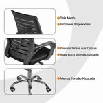 Kit 6 Cadeiras De Escritório Diretor Roma OficialCadeira de Escritório Secretaria Diretor Roma – Conforto, Ergonomia e Estilo para o Seu Dia a DiaA Cadeira de Escritório Secretaria Diretor Roma da Oficial Webshop é a escolha perfeita para quem busca aliar bem-estar, praticidade e design moderno. Desenvolvida para oferecer suporte ergonômico e conforto prolongado, ela é ideal para escritórios corporativos, home offices ou ambientes de estudo.Com estrutura resistente e revestimento em tela Mesh respirável, proporciona ventilação contínua e adaptação perfeita à postura do corpo, garantindo conforto durante longas horas de uso. Seu sistema de ajuste de altura permite personalizar a posição ideal em relação à mesa, enquanto os apoios de braço e a base giratória com rodízios garantem mobilidade, estabilidade e funcionalidade no dia a dia.A montagem é simples e rápida — acompanha manual de instruções e suporte de atendimento especializado da equipe Oficial Webshop. Diferenciais do ProdutoDesign Ergonômico e Moderno: Encosto curvado e estrutura leve que proporcionam conforto e postura correta.Conforto Ajustável: Regulagem de altura que se adapta perfeitamente à mesa de trabalho.Encosto em Tela Mesh: Revestimento respirável que mantém o frescor e evita desconforto térmico.Apoios de Braço Anatômicos: Desenvolvidos para melhorar a postura e reduzir a fadiga dos ombros e braços.Mobilidade 360º: Base giratória com rodízios que garantem movimentação fácil e suave.Estrutura Reforçada: Produzida em nylon e aço cromado para resistência e durabilidade.Extras: Acompanha e-book exclusivo. Especificações TécnicasModelo: Secretaria Diretor RomaMarca: Oficial WebshopTipo de Cadeira: Escritório / Home Office / CorporativaEstrutura: Nylon e Aço CromadoRevestimento: Tela Mesh e NylonBraços: Polipropileno ergonômicoAssento: Madeira multilaminadaAltura Total: AjustávelPeso do Produto: 5,5 kgPeso Máximo Suportado: 120 kgUso: InternoGarantia: 3 meses Cuidados e ManutençãoLimpe com pano macio levemente umedecido e finalize com pano seco.Evite o uso de produtos abrasivos e mantenha em locais secos e protegidos da umidade ou da exposição direta ao sol para conservar o acabamento e prolongar a vida útil do produto. Ergonomia e Estilo em Cada Detalhe!A Cadeira Secretaria Diretor Roma é ideal para quem busca conforto, funcionalidade e design elegante.Com estrutura durável, regulagem prática e encosto ergonômico, ela transforma qualquer ambiente de trabalho em um espaço moderno, produtivo e cheio de estilo.