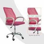 Kit 6 Cadeiras De Escritório Esteirinha Mesh Ergonômica - RosaCadeira de Escritório Esteirinha Tela Mesh – Conforto, Leveza e Ergonomia para o Dia a DiaA Cadeira Esteirinha Tela Mesh foi desenvolvida para oferecer praticidade, ventilação e conforto para quem passa longas horas sentado. Com design leve, estrutura funcional e recursos essenciais de ergonomia, ela é ideal para escritórios, home office e ambientes de estudo que exigem mobilidade e bem-estar.Seu encosto em tela Mesh respirável garante excelente circulação de ar, reduzindo o acúmulo de calor durante o uso prolongado. O assento possui estrutura resistente em madeira multilaminada e revestimento confortável para tornar sua rotina mais agradável.Com ajuste de altura, sistema giratório e rodízios de movimentação suave, a Esteirinha oferece a versatilidade que o seu dia a dia precisa, ao mesmo tempo em que os apoios de braço fixos contribuem para uma postura mais estável e confortável.Disponível nas cores preta e branca, para combinar com diferentes estilos de ambiente. Conforto, Mobilidade e Ergonomia EssencialEncosto em tela Mesh respirável, proporcionando ventilação contínua.Assento com estrutura resistente e formato ergonômico para maior conforto ao longo do dia.Apoios de braço fixos que auxiliam na postura durante reuniões, atividades de escrita e uso de computador.Sistema giratório com rotação de 360º, oferecendo liberdade de movimento.Regulagem de altura que permite ajustar a postura ideal de acordo com sua mesa de trabalho.Rodízios resistentes e silenciosos, garantindo deslocamento suave no ambiente.Acompanha e-book exclusivo como material adicional. Medidas do ProdutoAlturaTotal: 89–97 cmAssento ao chão: 58–67 cmAltura do encosto: 51 cmAltura do braço: 23 cmLarguraBase 1 perna: 25 cmBase 2 pernas: 50 cmEncosto: 47 cmAssento: 46 cmDistância entre braços: 61 cmLargura do braço: 5 cmComprimentoEspessura do encosto: 2 cmAssento: 45,5 cmBraço: 32 cm Informações TécnicasPeso: 5 kgEstrutura: Nylon e aço cromadoRevestimento: Nylon e tela MeshBraços: PolipropilenoAssento: Madeira multilaminadaPeso máximo suportado: 120 kgCores disponíveis: Preto e Branco Leveza, Funcionalidade e Conforto ao Seu AlcanceA Cadeira Esteirinha Tela Mesh é a escolha ideal para quem busca uma cadeira prática, arejada e confortável para uso diário.Combinando mobilidade, ergonomia e um design versátil, ela se adapta facilmente a diferentes ambientes — sempre entregando bem-estar e desempenho.