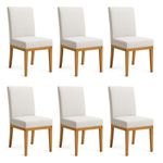 Kit 6 Cadeiras De Jantar Brisa Linho Base De Madeira - Pallazio Cor BegeO Kit 6 Cadeiras de Jantar Brisa Linho Base de Madeira é a escolha ideal para quem busca elegância e conforto em cada detalhe da decoração. Com design contemporâneo e acabamento sofisticado, essas cadeiras trazem charme e estilo para a sala de jantar, valorizando o ambiente com modernidade e requinte.O revestimento em tecido boucle confere textura diferenciada, além de ser resistente e aconchegante ao toque. Já a base em madeira oferece estabilidade e durabilidade, criando uma combinação perfeita entre naturalidade e sofisticação. O assento acolchoado garante conforto durante as refeições e momentos de convivência.Combinando design elegante, praticidade e alta qualidade, o Kit 6 Cadeiras de Jantar Brisa Linho Base de Madeira se adapta facilmente a diferentes estilos de decoração. Além de funcionais, essas cadeiras transformam o espaço em um ambiente acolhedor e sofisticado. Um conjunto perfeito para quem valoriza beleza e conforto.Informações Técnicas:Revestimento: BoucleEstrutura: MadeiraTipo de Pés: Base de MadeiraCor dos Pés: MadeiraDensidade da Espuma: D23Peso Suportado: Até 160 kgMontagem: O produto vai montadoMedidas:Altura total: 97 cmLargura total: 46 cmProfundidade total: 58 cmAltura do chão ao assento: 46 cmAltura do encosto: 53 cmLargura do assento: 46 cmProfundidade do assento: 44 cmEspessura do assento: 11 cmPeso: 13 kgInformações Importantes:Confira as dimensões do produto no momento da compra e certifique-se de que passará normalmente por escadas, elevadores, portas e corredores.Os produtos vão embalados e enviados com total segurança.As cores dos produtos podem sofrer alterações dependendo do seu monitor.Não nos responsabilizamos no ato da entrega por montagens, desmontagens, instalações de produtos.Não nos responsabilizamos no ato da entrega por subir escadas, elevadores, nem utilização de guinchos ou equipamentos similares para acesso a pisos superiores em apartamentos.