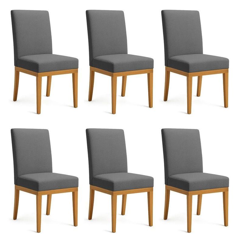 Kit 6 Cadeiras De Jantar Brisa Linho Base De Madeira - Pallazio Cor GrafiteO Kit 6 Cadeiras de Jantar Brisa Linho Base de Madeira é a escolha ideal para quem busca elegância e conforto em cada detalhe da decoração. Com design contemporâneo e acabamento sofisticado, essas cadeiras trazem charme e estilo para a sala de jantar, valorizando o ambiente com modernidade e requinte.O revestimento em tecido boucle confere textura diferenciada, além de ser resistente e aconchegante ao toque. Já a base em madeira oferece estabilidade e durabilidade, criando uma combinação perfeita entre naturalidade e sofisticação. O assento acolchoado garante conforto durante as refeições e momentos de convivência.Combinando design elegante, praticidade e alta qualidade, o Kit 6 Cadeiras de Jantar Brisa Linho Base de Madeira se adapta facilmente a diferentes estilos de decoração. Além de funcionais, essas cadeiras transformam o espaço em um ambiente acolhedor e sofisticado. Um conjunto perfeito para quem valoriza beleza e conforto.Informações Técnicas:Revestimento: BoucleEstrutura: MadeiraTipo de Pés: Base de MadeiraCor dos Pés: MadeiraDensidade da Espuma: D23Peso Suportado: Até 160 kgMontagem: O produto vai montadoMedidas:Altura total: 97 cmLargura total: 46 cmProfundidade total: 58 cmAltura do chão ao assento: 46 cmAltura do encosto: 53 cmLargura do assento: 46 cmProfundidade do assento: 44 cmEspessura do assento: 11 cmPeso: 13 kgInformações Importantes:Confira as dimensões do produto no momento da compra e certifique-se de que passará normalmente por escadas, elevadores, portas e corredores.Os produtos vão embalados e enviados com total segurança.As cores dos produtos podem sofrer alterações dependendo do seu monitor.Não nos responsabilizamos no ato da entrega por montagens, desmontagens, instalações de produtos.Não nos responsabilizamos no ato da entrega por subir escadas, elevadores, nem utilização de guinchos ou equipamentos similares para acesso a pisos superiores em apartamentos.