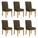 Kit 6 Cadeiras De Jantar Brisa Linho Base De Madeira - Pallazio Cor Marrom CaféO Kit 6 Cadeiras de Jantar Brisa Linho Base de Madeira é a escolha ideal para quem busca elegância e conforto em cada detalhe da decoração. Com design contemporâneo e acabamento sofisticado, essas cadeiras trazem charme e estilo para a sala de jantar, valorizando o ambiente com modernidade e requinte.O revestimento em tecido boucle confere textura diferenciada, além de ser resistente e aconchegante ao toque. Já a base em madeira oferece estabilidade e durabilidade, criando uma combinação perfeita entre naturalidade e sofisticação. O assento acolchoado garante conforto durante as refeições e momentos de convivência.Combinando design elegante, praticidade e alta qualidade, o Kit 6 Cadeiras de Jantar Brisa Linho Base de Madeira se adapta facilmente a diferentes estilos de decoração. Além de funcionais, essas cadeiras transformam o espaço em um ambiente acolhedor e sofisticado. Um conjunto perfeito para quem valoriza beleza e conforto.Informações Técnicas:Revestimento: BoucleEstrutura: MadeiraTipo de Pés: Base de MadeiraCor dos Pés: MadeiraDensidade da Espuma: D23Peso Suportado: Até 160 kgMontagem: O produto vai montadoMedidas:Altura total: 97 cmLargura total: 46 cmProfundidade total: 58 cmAltura do chão ao assento: 46 cmAltura do encosto: 53 cmLargura do assento: 46 cmProfundidade do assento: 44 cmEspessura do assento: 11 cmPeso: 13 kgInformações Importantes:Confira as dimensões do produto no momento da compra e certifique-se de que passará normalmente por escadas, elevadores, portas e corredores.Os produtos vão embalados e enviados com total segurança.As cores dos produtos podem sofrer alterações dependendo do seu monitor.Não nos responsabilizamos no ato da entrega por montagens, desmontagens, instalações de produtos.Não nos responsabilizamos no ato da entrega por subir escadas, elevadores, nem utilização de guinchos ou equipamentos similares para acesso a pisos superiores em apartamentos.
