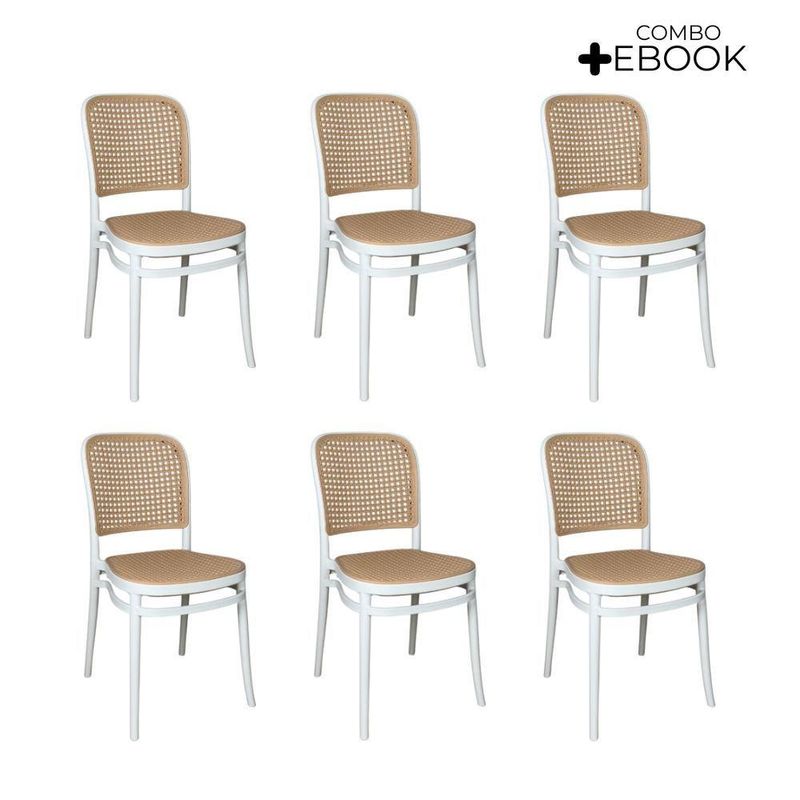 Kit 6 Cadeiras De Jantar Roma Para Sala E Cozinha Branco Cadeira de Jantar Roma para Sala e Cozinha BrancoDesign e EstiloCom visual moderno e elegante, a Cadeira Roma traz um toque sofisticado à decoração. Seu encosto e assento apresentam leve inclinação ergonômica, garantindo conforto duradouro durante as refeições ou nas conversas à mesa.Material e DurabilidadeProduzida 100% em polipropileno de alta qualidade, a cadeira oferece excelente resistência e durabilidade. Com peso aproximado de 5?kg, suporta até 120?kg e contribui para um ambiente agradável e funcional.Conforto e PraticidadeO assento e encosto foram ergonomicamente projetados para oferecer suporte e conforto prolongado. A limpeza é simples e rápida: basta um pano úmido para manter a peça com aspecto impecável.Dimensões e Especificações Técnicas:Altura total: 85?cmLargura total: assento varia entre 34?cm a 41,5?cmProfundidade total: 42?cmComprimento: 42 cmGarantiaContempla 3 meses de garantia contra defeitos de fabricação, reforçando a segurança da sua compra. Destaques Característica: Benefício:Polipropileno Premium - Leveza, resistência e fácil manutençãoSuporta até 120?kg - Uso seguro e estabilidade para várias pessoasProjeto ergonômico - Conforto prolongado, ideal para refeições e lazerMedidas compactas - Facilmente encaixável em diferentes ambientesGarantia de fábrica - Assistência rápida e confiávelIdeal para: Salas de jantar, cozinhas gourmet, varandas, áreas de lazer ou ambientes de estar. Perfeita para quem busca design contemporâneo aliado à funcionalidadeAcompanha E-book!