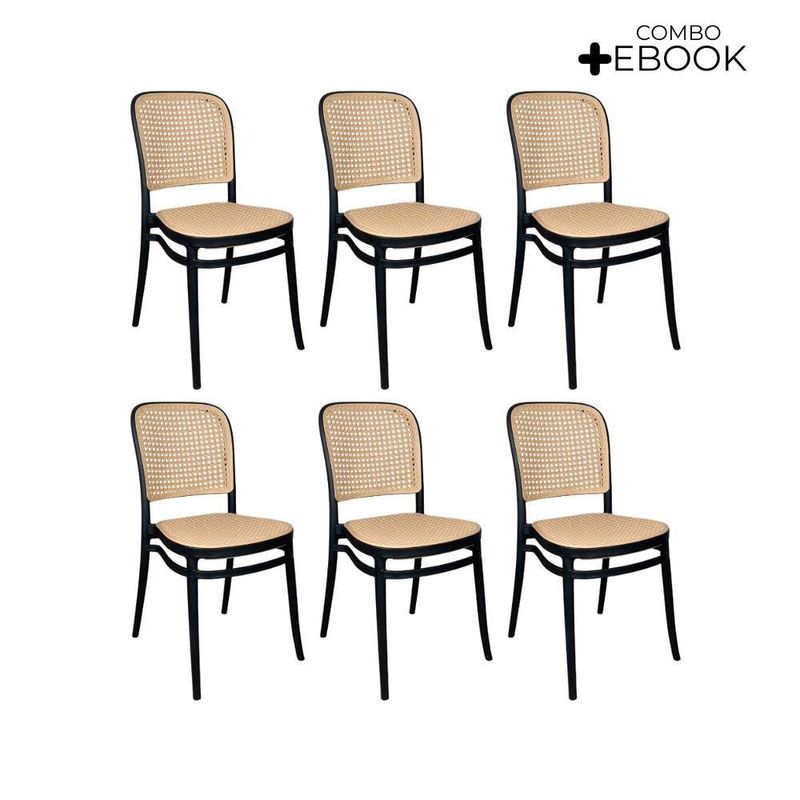 Kit 6 Cadeiras De Jantar Roma Para Sala E Cozinha Preto Cadeira de Jantar Roma para Sala e Cozinha PretoDesign e EstiloCom visual moderno e elegante, a Cadeira Roma traz um toque sofisticado à decoração. Seu encosto e assento apresentam leve inclinação ergonômica, garantindo conforto duradouro durante as refeições ou nas conversas à mesa.Material e DurabilidadeProduzida 100% em polipropileno de alta qualidade, a cadeira oferece excelente resistência e durabilidade. Com peso aproximado de 5?kg, suporta até 120?kg e contribui para um ambiente agradável e funcional.Conforto e PraticidadeO assento e encosto foram ergonomicamente projetados para oferecer suporte e conforto prolongado. A limpeza é simples e rápida: basta um pano úmido para manter a peça com aspecto impecável.Dimensões e Especificações Técnicas:Altura total: 85?cmLargura total: assento varia entre 34?cm a 41,5?cmProfundidade total: 42?cmComprimento: 42 cmGarantiaContempla 3 meses de garantia contra defeitos de fabricação, reforçando a segurança da sua compra. Destaques Característica: Benefício:Polipropileno Premium - Leveza, resistência e fácil manutençãoSuporta até 120?kg - Uso seguro e estabilidade para várias pessoasProjeto ergonômico - Conforto prolongado, ideal para refeições e lazerMedidas compactas - Facilmente encaixável em diferentes ambientesGarantia de fábrica - Assistência rápida e confiávelIdeal para: Salas de jantar, cozinhas gourmet, varandas, áreas de lazer ou ambientes de estar. Perfeita para quem busca design contemporâneo aliado à funcionalidadeAcompanha E-book!