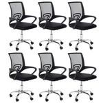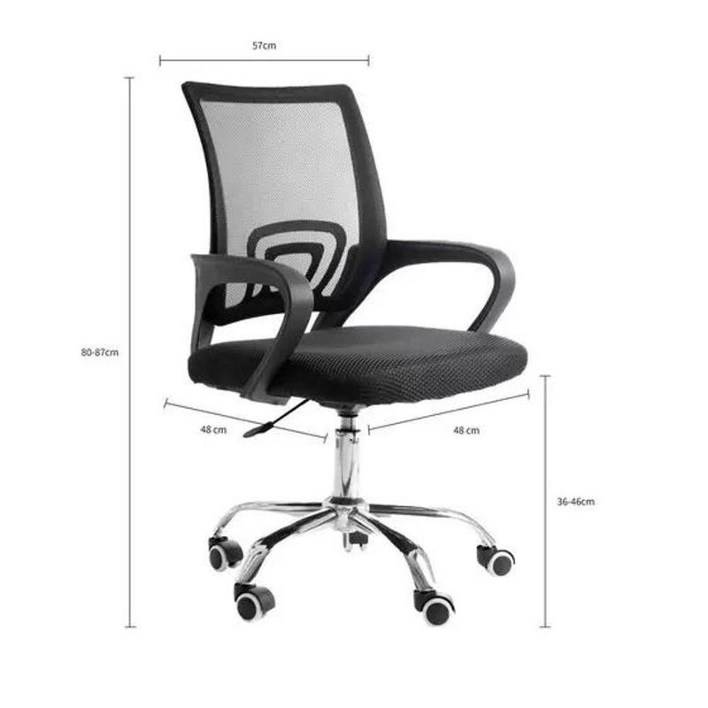Kit 6 Cadeiras De Rodízios Escritório Home Office Telinha PretoA cadeira de escritório conta com base cromada moderna e muito confortável!Modelo com regulador de altura, assento estofados revestido em tecido mesh 100% poliéster e encosto revestido em tecido mesh , rodízios em nylon proporcionando mais conforto durante as horas de uso, Com um design único, somado a toda sofisticação e elegância necessária para combinar com seu escritório! É a escolha perfeita para quem busca qualidade e conforto com um preço baixo.Especificações Técnicas:Modelo: Mesh New JavaBase: CromadaCor: PretaRegulável: simAmbiente: EscritórioEncosto Fixo: SimEncosto Material: Tela meshAssento estofado com espuma (D26)Revestimento: PolipropilenoPeso suportado pelo produto: até 120kgMaterial do Assento: Madeira Compensada Revestida em Tela Mesh, Tecido telado - AcolchoadoAcabamento: Espuma Injetada de Alta DensidadePistão a gás classe 3Dimensões da Cadeira:Altura mínima 80 cmAltura máxima: 87 cmLargura: 57 cmComprimento: 48 cmAssento Largura: 48 cmAltura do assento ao chão: 36-46 cmEspessura: 6 cmPeso: 8 kgGarantia legal de 90 dias para defeito de fabricação.Instruções/Cuidados: Produto recomendado para uso doméstico. Limpar com pano macio seco ou levemente humedecido com água.