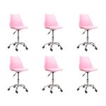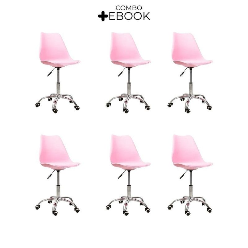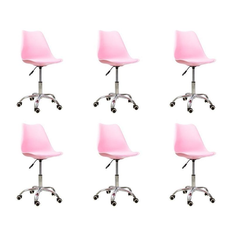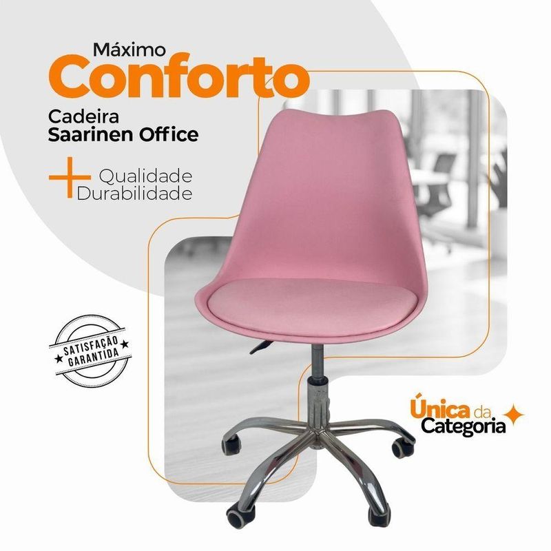 Kit 6 Cadeiras Office Base Cromada Giratória Saarinen RosaCadeira Saarinen com Base Office – Conforto, Design e Versatilidade para o Seu EspaçoDescubra o equilíbrio perfeito entre ergonomia e sofisticação com a Cadeira Saarinen com Base Office.Desenvolvida para proporcionar conforto e estilo em qualquer ambiente, ela é ideal para escritórios, home offices, salas de estudo e espaços corporativos modernos.Seu design curvado segue padrões ortopédicos, oferecendo suporte ideal ao corpo mesmo durante longos períodos de uso.Com estrutura ergonômica e acabamento refinado, a Saarinen alia conforto, resistência e um toque de elegância que valoriza qualquer decoração.A base giratória com rodízios e ajuste de altura proporciona mobilidade suave e personalização completa, garantindo praticidade e bem-estar no dia a dia.A montagem é simples e rápida — acompanha manual de instruções e suporte de atendimento especializado para qualquer dúvida. Diferenciais do ProdutoDesign Ergonômico e Elegante: Curvas anatômicas que garantem conforto e postura correta.Ajuste de Altura: Permite adaptar a cadeira conforme sua necessidade e altura da mesa.Base Giratória com Rodízios: Mobilidade fluida e praticidade para o trabalho ou estudos.Estrutura Robusta: Produzida com materiais de alta qualidade e excelente durabilidade.Versatilidade de Uso: Ideal para escritórios, home offices, salas de estudos e ambientes corporativos.Montagem Simples: Acompanha manual e suporte pós-venda especializado.Extras: acompanha e-book exclusivo. Especificações TécnicasModelo: Saarinen OfficeMarca: Oficial WebshopTipo de Cadeira: Office / GiratóriaMaterial da Estrutura: Polipropileno e Aço CromadoRevestimento: Material sintético de alta resistênciaAssento: Anatômico com espuma de confortoBase: Giratória com rodízios e regulagem de alturaPeso Máximo Suportado: 120 kg Dimensões do ProdutoAltura Total (mín./máx.): 81 cm a 93,5 cmLargura Total: 48,5 cmComprimento: 58 cm Cuidados e ManutençãoLimpe com pano úmido e detergente neutro, evitando produtos abrasivos.Evite exposição direta ao sol para preservar a cor e o brilho da cadeira. Conforto e Sofisticação em Cada Detalhe!A Cadeira Saarinen com Base Office é a combinação ideal entre ergonomia, estilo e praticidade.Perfeita para quem busca conforto durante longas horas de trabalho ou estudo, ela transforma qualquer espaço em um ambiente mais funcional e elegante.