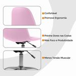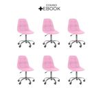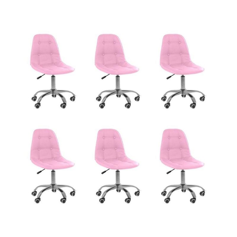 Kit 6 Cadeiras Office Eiffel Botonê Oficial RosaCadeira Office Eiffel Botonê Ajustável com Base Giratória – Design, Conforto e Versatilidade para o Seu EspaçoDescubra o equilíbrio ideal entre estilo moderno e conforto ergonômico com a Cadeira Office Eiffel Botonê Ajustável com Base Giratória.Desenvolvida para oferecer elegância e funcionalidade, ela é perfeita para escritórios, home offices, salas de estudo, áreas de lazer e ambientes comerciais.Seu design contemporâneo com estofamento botonê traz um toque sofisticado à decoração, enquanto o assento anatômico e o encosto ergonômico garantem conforto e postura correta mesmo durante longos períodos de uso.Com ajuste de altura e base giratória com rodízios, a Cadeira Eiffel Botonê proporciona mobilidade suave e personalização de uso, adaptando-se facilmente às suas necessidades diárias com praticidade e estilo.A montagem é simples e rápida — acompanha manual de instruções e suporte de atendimento especializado para qualquer dúvida. Diferenciais do ProdutoDesign Sofisticado e Ergonômico: Estilo botonê moderno com curvas anatômicas que garantem conforto e elegância.Ajuste de Altura Personalizado: Permite adaptar a cadeira ao seu biotipo e à altura da mesa.Base Giratória com Rodízios Cromados: Mobilidade fluida e estabilidade em qualquer superfície.Estrutura Resistente e Durável: Produzida em polipropileno (PP) e aço cromado de alta qualidade.Revestimento Premium: Material sintético (PU) de toque suave e fácil limpeza.Versatilidade de Uso: Ideal para ambientes corporativos e residenciais.Montagem Simples: Acompanha manual e suporte pós-venda especializado.Extras: acompanha e-book exclusivo. Especificações TécnicasModelo: Eiffel BotonêMarca: Oficial WebshopTipo de Cadeira: Office / GiratóriaMaterial da Estrutura: Polipropileno (PP) e Aço CromadoRevestimento: Material Sintético (PU)Assento e Encosto: Madeira multilaminada com acabamento botonêBase: Giratória com rodízios e regulagem de alturaPeso Máximo Suportado: 120 kgPeso da Cadeira: 5,5 kg Dimensões do ProdutoAltura Total (mín./máx.): 84,5 cm a 98 cmAltura do Assento (mín./máx.): 44,5 cm a 58 cmAltura do Encosto: 68 cmLargura do Assento: 43 cmProfundidade do Assento: 41 cmLargura da Base (pernas): 47,5 cmEspessura do Encosto: 5 cm Cuidados e ManutençãoLimpe com pano úmido e detergente neutro, evitando produtos abrasivos que possam danificar o acabamento.Evite exposição direta ao sol para preservar a cor, o brilho e a durabilidade do revestimento e da base cromada. Conforto e Estilo em Cada Detalhe!A Cadeira Office Eiffel Botonê Ajustável com Base Giratória combina ergonomia, resistência e elegância em um único design.Ideal para quem busca um ambiente funcional e sofisticado, ela transforma o seu espaço em um local mais confortável, moderno e inspirador.