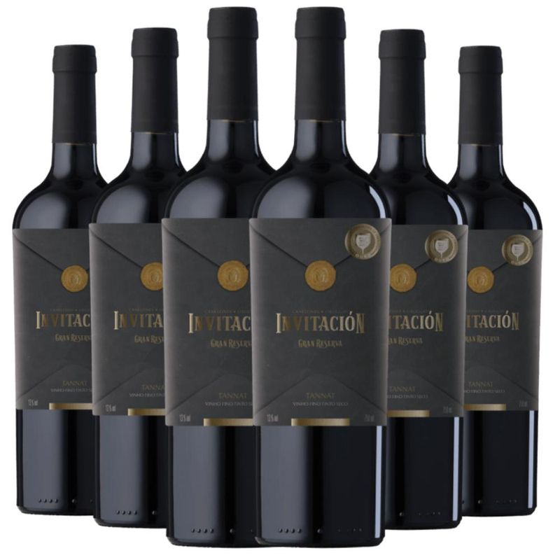Kit com 6 Garrafas Invitación Gran Reserva Tannat – Potência e Elegância em Cada TaçaUm tinto uruguaio encorpado, intenso e perfeito para momentos especiaisO Invitación Gran Reserva Tannat é um vinho que expressa toda a força e autenticidade da uva símbolo do Uruguai. Com taninos marcantes e excelente estrutura, é ideal para quem aprecia vinhos robustos e cheios de personalidade. Este kit com 6 garrafas é perfeito para sua adega ou para presentear com sofisticação.Características do Vinho:Tipo: Tinto secoUva: 100% TannatOrigem: UruguaiClassificação: Gran ReservaNotas de degustação: Frutas negras maduras, especiarias, toques de baunilha e madeira bem integradaAmadurecimento: Passagem por barricas de carvalho, conferindo complexidade e elegânciaHarmonização: Carnes vermelhas, cordeiro, pratos de caça, queijos curadosTemperatura de serviço: 16 °C a 18 °CIdeal para:Jantares especiais e ocasiões marcantesPresentear apreciadores de vinhos intensosMontar uma adega com rótulos de personalidadeDegustações e harmonizações com pratos robustosImagens ilustrativas. A safra pode variar conforme a disponibilidade, mantendo sempre o padrão de qualidade Invitación.