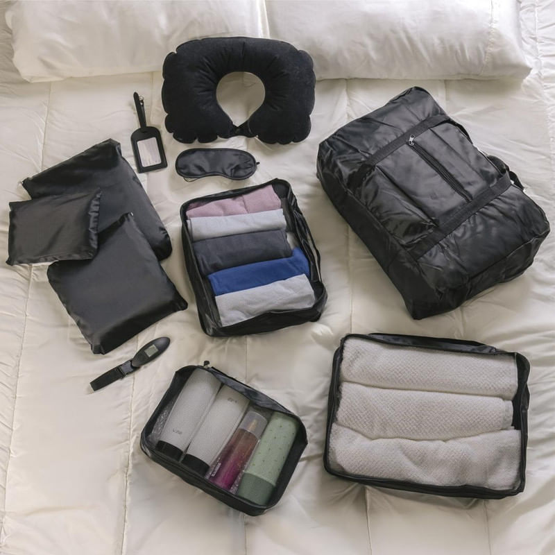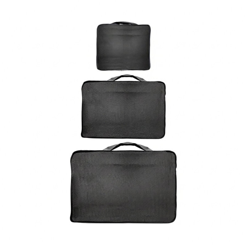 Kit 6 Organizadores para Mala de Viagem Necessaires Nylon Lyor Detalhes do Produto: O kit essencial para viajar! Ideal para categorizar e organizar roupas, sapatos, acessórios e itens pessoais na mala de viagem. O conjunto é composto por 6 organizadores de diferentes tamanhos que proporcionam praticidade e otimizam o espaço na mala. Produzidos com nylon, material durável, leve, fácil de limpar e impermeável, protegem suas roupas de umidade durante a viagem e não adiciona peso significativo à bagagem. As necessaires com alça facilitam o manuseio e transporte, e o acabamento telado ajuda a identificar rapidamente as peças armazenadas. Cuidados: Sugere-se higienizar com sabão neutro e esponja macia, evitando produtos abrasivos no processo de limpeza. Material: Nylon Medidas: Necessaire 1: 25 cm largura x 16 cm altura Necessaire 2: 26 cm largura x 24 cm altura Necessaire 3: 34 cm largura x 26 cm altura Necessaire com Alça e Tela 4: 12 cm comprimento x 30 cm largura x 20 cm altura Necessaire com Alça e Tela 5: 12 cm comprimento x 30 cm largura x 27 cm altura Necessaire com Alça e Tela 6: 12 cm comprimento x 39 cm largura x 30 cm altura Itens inclusos: 1 unidade do Kit 6 Organizadores para Mala de Viagem Necessaires Nylon Garantia do fornecedor: 3 meses