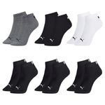 Descrição:Com o Kit 6 Pares De Meias Puma Logo, você garante conforto durante os treinos e práticas de atividades físicas. Desenvolvida com a leveza do algodão e elasticidade da poliamida, as peças possuem toque macio, reforço no calcanhar e na ponta, oferecendo alta durabilidade e melhor ventilação. Traz logo da marca em contraste, e elástico central para ajuste perfeito aos pés. Medidas aproximadas (cm): 39/43- 22x09 (Comprimento do Pé x Largura). INFORMAÇÕES: Composição: 65% algodão, 30% poliamida, 5% elastano Altura do Cano: Curto Indicado para: treinos, dia a dia e prática de atividades Gênero: Masculino