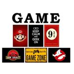 Kit 6 Placas Decorativas Geek Gamer Nerd Play C/ Letras GameKit composto por 6 placas + 4 letras de alta qualidade.Tamanhos: 4 Letras GAME 16x15 cm cada (Plástico), 6 un 20x30 cm (MDF).Placas de Recortes são de alta qualidade no material plástico 2 mm de espessura. Recorte eletrônico perfeito ao desenho. Impressão de alta definição UV direta no material. Possui cores vivas, durabilidade indeterminado, resistência ao sol e água.Placas de MDF 3mm são impressas em alta qualidade em adesivo. Não Molhar.Envio: IMEDIATO.Acompanha fitas dupla face para fixação.Garantia: 3 meses, contra defeitos de fábrica.Processo sustentável e amigável ao meio ambiente.Recomendação: Limpar com pano seco.*Objetos/Móveis que compõe as imagens não acompanham na compra.