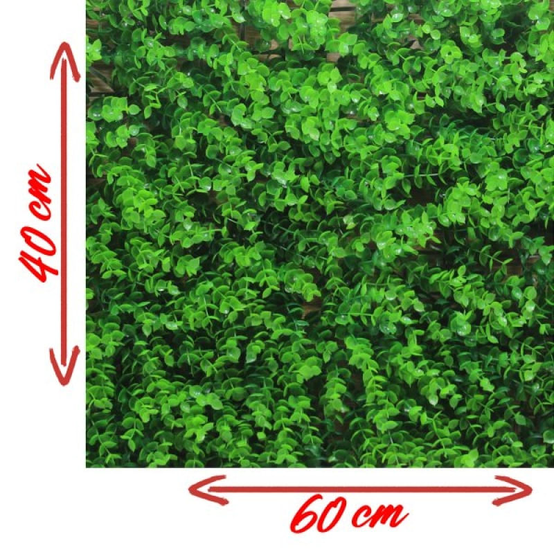 Kit 6 Placas Verdes Jardim Vertical Muro Inglês 40x60cm - Placa Verde Para Muro Inglês Traz a beleza e o frescor de um jardim verdejante para o seu espaço, sem a necessidade de manutenção constante. Com um design realista e detalhado, essa placa de grama artificial recria com perfeição a aparência e a textura do muro inglês, trazendo um toque de natureza para qualquer ambiente interno ou externo. Feita com materiais de alta qualidade, essa placa é resistente aos elementos, não desbota sob a luz solar e mantém sua aparência exuberante ao longo do tempo. Uma das principais vantagens desse produto é a praticidade. Ao optar por uma planta artificial, você economiza tempo e recursos, pois não há necessidade de regar, podar ou fertilizar. Além disso, a grama artificial é resistente às condições climáticas, permanecendo verde e vibrante durante todas as estações do ano. muro ingles h22728 1 Aplicação: Essa placa de grama artificial é versátil e pode ser aplicada em uma variedade de espaços. Ela é perfeita para criar um jardim vertical em paredes, seja em ambientes residenciais, comerciais ou até mesmo em eventos especiais. Além disso, pode ser usada para decorar varandas, terraços, áreas de lazer ou qualquer área em que você deseje adicionar um toque de natureza sem a preocupação de cuidados intensivos. Características: Cor: Verde; Diferentes tons de verde, que em conjunto trazem uma aparência realista; Largura: 40cm; Comprimento: 60cm; Espessura: 8cm; Altura dos "galhos": 11cm; Material: Plástico; Conteúdo da Embalagem: • 6 Painéis Verde Muro Inglês de 40cm x 60cm; Este kit cobre uma área de 1,20m X 1,20m; Características Gerais do Produto: • Material: Plástico • Modelo: Jardim Vertical Artificial Muro Inglês Garantia: • Garantia de fábrica - 1 Mês