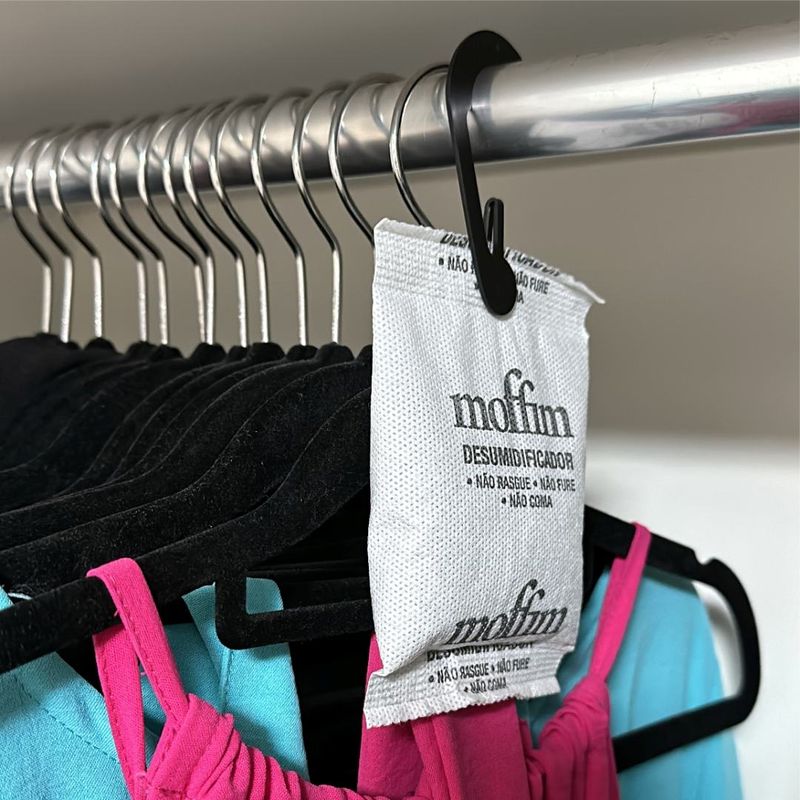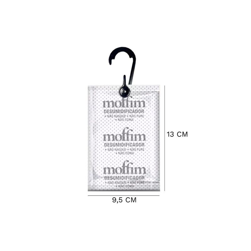 Kit 6 Unidades Moffim Fragrância Vanilla Evita Mofo Desumidificador de Ambientes 110g Detalhes do Produto: O Moffim é um poderoso desumidificador que age eliminando a umidade do ambiente sem gerar líquidos e evita a formação de mofo, fungos, bolores e mau odores. Além de evitar o mofo, também perfuma o ambiente com suave fragrância Vanilla. É ideal para proteger roupas, sapatos, bolsas, roupas de couro, roupas de cama, enxovais, brinquedos, equipamentos eletrônicos, livros e documentos contra a umidade. Fácil de usar, o sachê ocupa pouco espaço e pode ser usado nos armários e gavetas, além disso, acompanha um gancho permitindo ser pendurado no cabideiro do guarda roupa ou closet. Pode ser usado também em outros ambientes fechados como, carro, barco e cofres. O Moffim é uma substância totalmente natural, feito de argila ativada que não polui o meio ambiente e pode ser descartado em lixo comum, sendo um produto ecologicamente correto. Possui ação prolongada de 30 dias até 90 dias, variando conforme a umidade do local. Composição: Bentonita e Fragrância Modo de uso: Verifique se o local está limpo antes de colocar o Moffim, pois ele não remove o mofo já existente. Coloque o sachê no local onde pretende eliminar a umidade, quando o mesmo expandir e endurecer, deverá ser trocado. Cuidados: CONSERVE FORA DO ALCANÇE DE CRIANÇAS E ANIMAIS DOMÉSTICOS. Não reaproveite a embalagem. Evite o contato prolongado com a pele. Depois de utilizar o produto, lave e seque as mãos. Não ingerir. Evite a inalação os aspiração, contato com os olhos e contato com a pele. Em caso de contato com os olhos e pele, lave imediatamente com água em abundância. Em caso de ingestão, não provoque vômito e consulte imediatamente o Centro de Intoxicações ou o médico, levando o rótulo do produto. Se o sachê rasgar, furar ou estiver danificado, não utilizar. Medidas: Sachê: 13 cm comprimento x 9,5 cm largura x 1 cm altura Itens inclusos: 6 unidades do Moffim Fragrância Vanilla Evita Mofo Desumidificador de Ambientes 110g Garantia do fornecedor: 3 meses