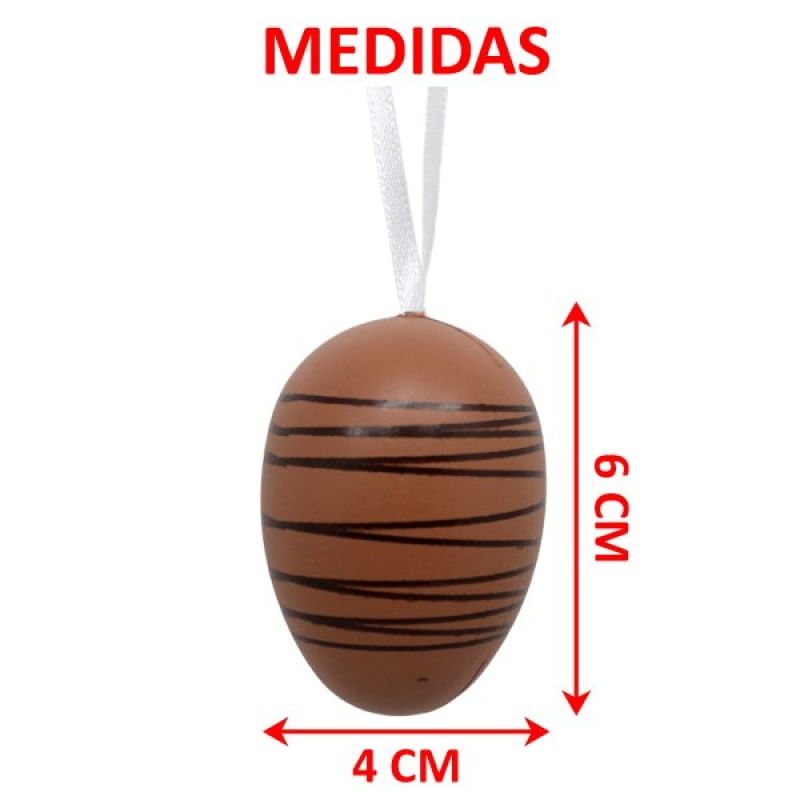 Kit 60 Pendente Ovos Páscoa Coelho Enfeite Decorativo 6x4cm - Pendentes Para a Páscoa!!!!! O ovo é considerado símbolo do nascimento e da vida e por isso é muito requisitado para representar a Ressurreição de Jesus Cristo, fase bíblica comemorada pelos cristãos neste festividade. Dizem que o ovo que representa a esperança de uma nova vida para toda a humanidade. Estes ovos pendentes são perfeito para decorar em época de páscoa. São delicados e chamativos. Especificações: Cores: Marrom e Branco; Material: Plástico; Medidas: Altura 6cm x Diâmetro 4cm; Modelo: Pendente; Acompanha: 6 Ovos Pendentes de Páscoa; Conteúdo Da Embalagem: 10 Conjuntos Com 6 Ovos Pendentes De Páscoa Decorativos De 6x4cm; Características Gerais do Produto: • Material: Plástico • Modelo: Ovos Pendentes De Páscoa • Cor: Branco; Marrom • Dimensões aproximadas: Altura 6cm x Diâmetro 4cm Garantia: • Garantia de fábrica - 1 Mês