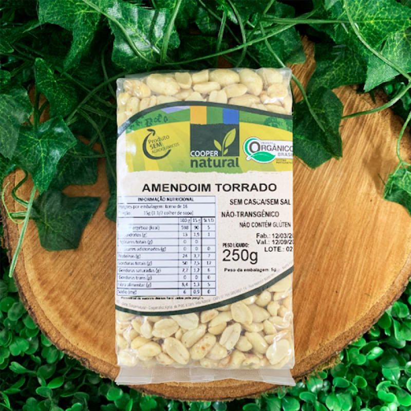 O Amendoim Torrado sem Sal Orgânico Coopernatural é uma leguminosa da Família Fabaceae consumida por cerca de 75% dos brasileiros. Ele possui elevado valor nutritivo, o que o torna um grande atrativo para cuidados com a saúde._x000D_ _x000D_ A mistura de gorduras saudáveis, proteínas e fibras do Amendoim Torrado sem Sal Orgânico Coopernatural fazem você se sentir mais satisfeito por mais tempo, mas por ser um alimento rico em calorias, é mais saudável quando consumido com moderação. Geralmente é consumido puro como snack, mas por ser um ingrediente super versátil, pode ser utilizado em diversas receitas tanto doces quanto salgadas._x000D_ _x000D_ Ingredientes: Amendoim torrado sem casca. NÃO CONTÉM GLÚTEN._x000D_ ALÉRGICOS: CONTÉM AMENDOIM._x000D_ _x000D_ Sobre a marca: O embrião de nossa Cooperativa foi a Associação Vida Natural nascida em agosto de 2001, a partir do desejo de onze produtores rurais orgânicos de pequeno porte da Serra Gaúcha, de construir uma organização que viesse a colaborar na promoção da agricultura familiar e ecológica em nossa região._x000D_ _x000D_ Ela veio para promover e fomentar uma agricultura sustentável tanto do ponto de vista ecológico como sócio-econômico, procurando fixar o homem no campo através de uma remuneração justa e digna pelo seu trabalho. Ao mesmo tempo em que vai preservando o meio ambiente para as futuras gerações, leva saúde para as pessoas que se alimentam desses produtos. Em suma, uma associação para promover a qualidade de VIDA._x000D_ Em 21 de setembro de 2004 a Associação Vida Natural se transformou na Cooperativa Vida Natural, Coopernatural e atualmente conta com vinte e sete sócios._x000D_ _x000D_ Sobre a Boomi: A Boomi é um mercado online com produtos saudáveis e sustentáveis, que fazem bem à saúde e ao planeta. São mais de 1.800 produtos de 100 pequenas marcas para você!_x000D_ Nascemos pequenos, mas com um propósito gigante: conectar pessoas a produtos acessíveis que tragam benefícios para a saúde, para o planeta e para a sociedade. Para isso, buscamos ofertar produtos de pequenos agricultores e pequenas empresas em um mundo cada vez mais veloz e que busca mais produtividade. Vamos sempre buscar levar o melhor para você!_x000D_ Nosso propósito é conectar alimentos saudáveis e produtos naturais e sustentáveis a pessoas preocupadas com a sua saúde e com a saúde do planeta. Com preço justo, comodidade e informações confiáveis._x000D_ Curadoria: Nossos produtos são criteriosamente validados pela nossa curadoria de produtos saudáveis, que busca produtores e empresas que compartilham do nosso alto padrão de qualidade. Da enorme lista de ingredientes banidos à preocupação do bem estar animal, desde o primeiro dia seguimos fieis aos nossos valores, trabalhando com transparência e práticas sustentáveis. Vendemos apenas produtos que admiramos e que nos orgulha.