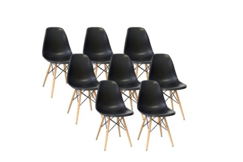 Kit 8 Cadeiras Eiffel Charles Eames Wood Base Madeira PRETA