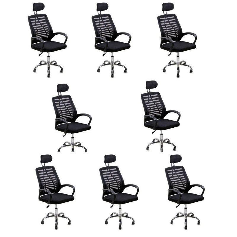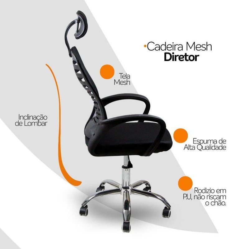 Kit 8 Cadeiras Escritório Diretor Tela Mesh Encosto + E-bookCadeira Escritório Diretor Tela Mesh Com Encosto De CabeçaA escolha de uma cadeira adequada desempenha um papel crucial na prevenção de possíveis lesões. Com a cadeira Diretor, você garante o conforto e bem-estar essenciais para suas atividades diárias. Além disso, sua versatilidade permite que ela se encaixe perfeitamente em diversos ambientes, seja em casa, no escritório ou home office, proporcionando um toque moderno e harmonioso. Personalização para seu confortoAproveite ao máximo o ajuste de altura desta cadeira. Isso lhe permitirá adaptar a posição do seu tronco em relação à mesa, proporcionando um nível de conforto específico para suas necessidades individuais. Promovendo o bem-estarOs apoios de braço foram cuidadosamente projetados para melhorar sua postura enquanto escreve, facilitando a incorporação natural quando necessário. Além disso, o modelo Diretor apresenta um suporte para a nuca, que é de extrema importância para manter a postura correta ao executar suas tarefas diárias, especialmente aquelas que requerem longos períodos sentado. Mobilidade sem esforçoAs rodas integradas garantem facilidade de movimento em seu espaço. Você não só poderá movê-la com tranquilidade, mas também desfrutará da conveniência das rotações de 360º, eliminando a necessidade de reajustar sua posição ou deslocar-se fisicamente. Escolha a cadeira Diretor para elevar seu conforto e eficiência, enquanto cuida do seu corpo e do seu ambiente de trabalho, estudo ou lazer.Peso: 5,5 kgEstrutura: Nylon e aço cromadoRevestimento: Nylon, Tela MeshBraço: PolipropilenoAssento: Madeira multilaminadaPeso máximo recomendado: 120 KgAcompanha E-book