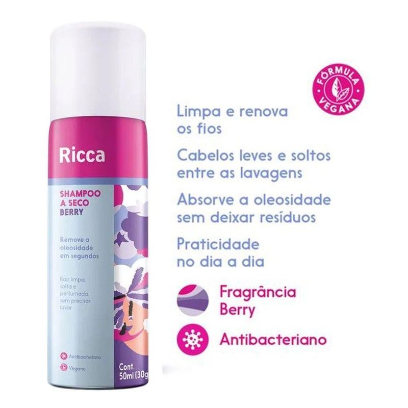 Kit 8 Shampoo A Seco Ricca De Bolso Remove Oleosidade Berry 50mlKit 8 Shampoo a Seco Ricca de Bolso Remove Oleosidade Berry 50mlCabelo renovado em segundos, quando você decide não lavar.O Shampoo a Seco Berry é a solução perfeita para dias corridos! Ele absorve instantaneamente a oleosidade e devolve o volume à raiz, proporcionando aquele efeito acabei de sair do banho. Ele limpa e renova o visual, deixando os fios leves, soltos e com um irresistível cheirinho floral delicioso. É o toque final que você precisa para estar sempre radiante, mesmo quando não há tempo de lavar os cabelos.Os benefícios que você vai amar!- Remove a oleosidade instantaneamente- Raiz limpa, solta e perfumada, sem precisar lavar- Praticidade no dia a dia- Vegano- Fragrância floral inspirada em perfumariaComo usar o Shampoo a seco Ricca?1. Divida o cabelo em mechas.2. Agite o produto por cerca de 10 segundos.3. Aplique o produto nas áreas mais oleosas a uma distância de 30 cm.4. Deixe agir por alguns segundos.5. Faça massagens no couro cabeludo espalhando o shampoo a seco.6. Finalize escovando os fios para remover todo o excesso de produto.Shampoo a Seco Ricca de Bolso Remove Oleosidade Berry 50mlCódigo: 126762Referênica: 2843Marca: RiccaMaterial: LíquidoCor: IncolorDimensões do produto (AxLxC): 12,50x4,00x4,00cm cada unidadeQuantidade: Kit com 8 unidades