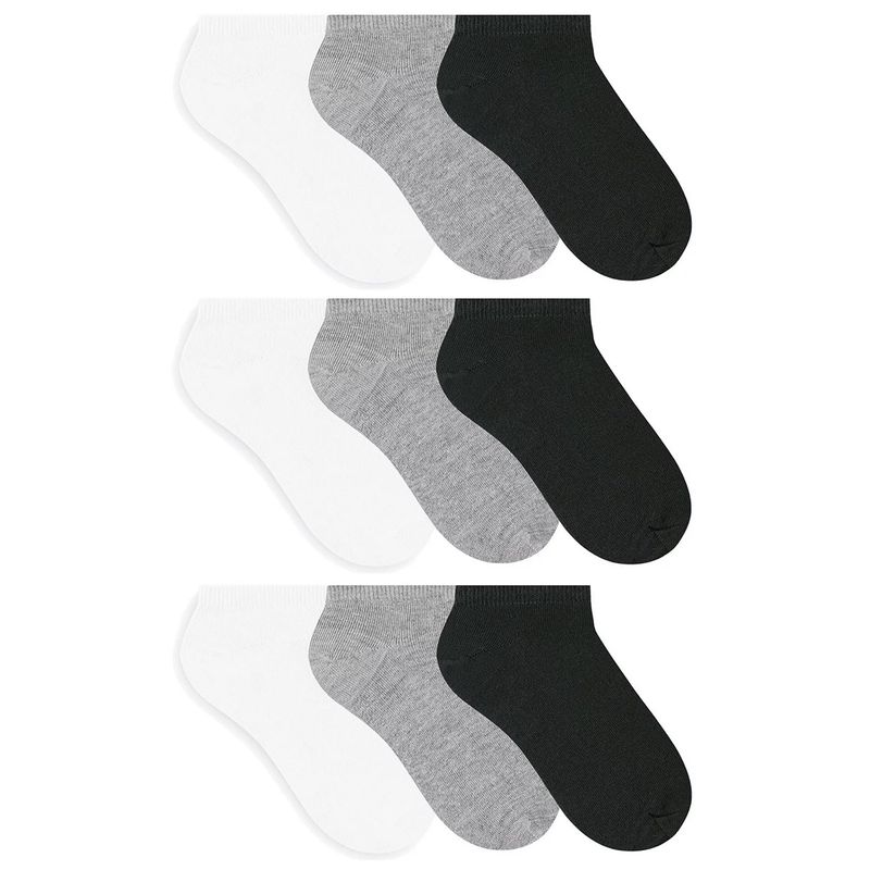 Descrição:Use o Kit 9 Pares de Meia Sapatilha Selene Esportiva Masculina nos treinos e também no dia a dia. Fabricada com a leveza do algodão e elasticidade da poliamida, esta meia possui toque macio, promovendo o conforto dos pés. Possui reforço no calcanhar e na ponta, onde proporciona maior durabilidade. Além disso, a barra elástica garante o ajuste perfeito. Seu designer compõe o kit nas cores neutras como uma sendo branca, a segunda cinza e a terceira preta que irão combinar com o visual esportivo. Medidas aproximadas (cm): 23x08 (comprimento do pé x largura) INFORMAÇÕES: Referência: 4001 Composição: 70% algodão, 25% poliamida, 3% elastano e 2% outra fibra Altura do Cano: Sapatilha Indicação: treinos, dia a dia e pratica de atividades