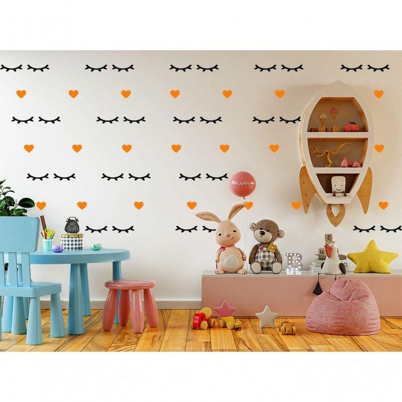 Kit Adesivo Decorativo De Parede Infantil Cílios E Coração Titulos Cor LaranjaKit Adesivo Decorativo de Parede Infantil Cílios e CoraçãoMEDIDAS:Kit 1 folha com:Folha inteira: 25cm largura X 63cm comprimento;- Cílios: 5cm de largura X 10cm de comprimento;- Coração: 2,5cm de largura X 3cm de comprimento;MATERIAL:-adesivo vinílico fosco não tóxicoTIPO DE IMPRESSÃO:-Impressão em alta resolução livre de imperfeições.OBSERVAÇÕES:- Adesivos para geladeira mas também podem ser colocados no quarto das crianças, na sala de estudos, no escritório, na sala de brinquedos, no box do banheiro ou em muitos outros lugares.- A aplicação é muito simples, é só tirar o adesivo e colar como quiser.- Os Adesivos já seguem com os recortes para agilizar e facilitar sua instalação, cortes feitos com alta precisão no momento da impressão para garantir a melhor qualidade.- Podem ser aplicados em paredes lisas, com tinta acetinada, latex e acrílica, móveis, espelhos, portas, box de banheiro, livres de poeira ou pó de gesso. Não aplicar sobre tinta fresca, tinta magnética, superfícies irregulares ou texturizadas, locais com infiltrações.* Imagem ambiente ilustrativaPRODUTO NÃO TOXICO