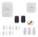 Conteúdo da embalagem 03 Sensor Passivo Sem Fio IVP 8000 PET; 02 Controle Remoto XAC 8000; 05 Sensor Magnetico Sem Fio XAS 8000; 01 Sirene Sem Fio XSS 8000; 01 Central de Alarme AMT 8000 Proteção com o melhor custo-benefício Composta pela central de alarme AMT 8000, sirene XSS 8000, controle remoto XAC 8000, sensor de movimento IVP 8000 PET e sensores de abertura XAS 8000. Divisão por ambientes A central de alarme AMT 8000 possui 16 partições, o que permite desarmar o sistema em pontos selecionados, mantendo a vigilância nos outros locais. Maior duração de bateria do mercado Com alta performance de comunicação, os dispositivos possuem bateria com duração de até 5 anos. Totalmente sem fio Com alcance de transmissão de até 600 metros sem barreiras, os dispositivos podem ficar distantes da central de alarmes. Configuração Remota Com o aplicativo AMT Remoto Mobile ou o software AMT Remoto Desktop, é possível configurar a sua central de alarme e sensores. CARACTERÍSTICAS CENTRAL DE ALARME AMT 8000 Capacidade para 16 partições com ativações/desativações independentes Possui receptor/transmissor de sinal sem fio integrado que opera com frequência de 915 à 928 MHz Reportagem de eventos por conexão Ethernet/Wi-fi, por linha telefônica com o módulo FXO 8000 instalado¹ e conexão GPRS com o módulo XAG 8000 instalado¹ Acesso remoto da central de alarme via aplicações e serviços Capacidade de visualização e programação dos parâmetros por até 16 teclados XAT 8000¹ ¹Produto vendido separadamente. SENSOR DE PRESENÇA IVP 8000 PET Ambiente de aplicação Interno Ângulo de detecção de 90° Imunidade a animais domésticos de até 20 kg, evitando disparos acidentais Alcance de detecção de até 12 m Comunicação bidirecional sem fio supervisionada e criptografada Chave tamper antiviolação frontal e traseira LED para verificação do status de comunicação Bateria de longa duração SENSOR DE ABERTURA XAS 8000 Ambiente de aplicação Interno Chave tamper antiviolação Proteção contra invasões de sinal Distância de abertura (GAP) de 20 mm Comunicação bidirecional sem fio supervisionada e criptografada LED para verificação do status de comunicação Bateria de longa duração SIRENE XSS 8000 Sirene sem fio para central de alarme AMT 8000 Proteção contra invasões de sinal Criptografia na transmissão de dados entre dispositivos Potência sonora elevada 100 Decibéis a 1 metro CONTROLE REMOTO XAC 8000 Acionamento 3 teclas independentes Compatibilidade com a Central de alarme AMT 8000 Proteção contra invasões de sinal Criptografia na transmissão de dados entre dispositivos LED indicador de status Antitravamento de teclas Características técnicas • Instalação da central de alarme próximo a um ponto de energia e com conexão ao wifi ou ethernet • Instalação da central de alarme, sensor IVP 8000 PET e sirene XSS 8000 na parede • Instalação de dois sensores magnéticos sem fio XAS 8000 em portas ou janelas • Instalação dos dispositivos com alcance de até 600 metros sem barreiras • Configuração, testes e orientação de uso da central de alarme e do aplicativo