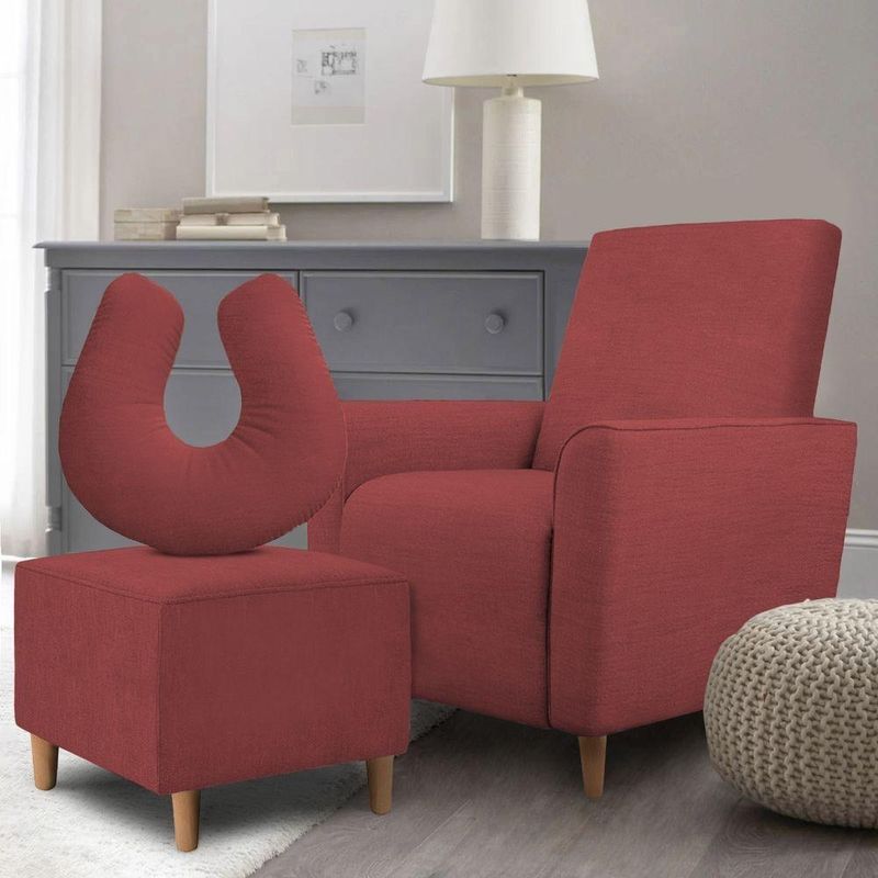 Kit Amamentação Poltrona + Puff + Almofada Julia Suede BordoUma peça indispensável para as mamães!produzida com matéria prima de excelente qualidade, oferece muito conforto e auxilia em um dos momentos mais importantes, a amamentação!Além de deixar o ambiente mais agradavel.O KIT CONTA COM OS SEGUINTES ITENS:1- poltrona1- puff para apoiar os pés1- alfomada para amamentaçãoDIMENSÔES POLTRONA:-Altura: 98 cm-Largura: 70 cm-Profundidade: 70 cmDIMENSÕES PUFF-Altura: 40 cm-Largura: 50 cm-Profundidade: 40 cmMONTAGEMO produto vai montado, sendo necessario apenas rosquear os pés.ESPECIFICAÇÕES:- Estrutura de madeira tratada- Pés de madeira- Quantidade de volume: 01- Suporta até 130kg- Tecido SuedeOBSERVAÇÕES:- A cor pode sofrer variações devido ao monitor ou lote do tecido.- Por se tratar de um estofado, as medidas podem ter uma pequena variação no tamanho de 3cm;