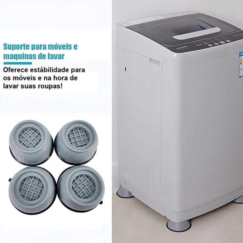 Kit Anti-ruído Para Máquina De Lavar Pés Estabilizadores E Niveladores Para Móveis - 4 PeçasDiga adeus às trepidações incômodas da sua máquina de lavar e aumente sua durabilidade em até 3 vezes! Com o conjunto de calços niveladores, seus móveis e eletrodomésticos ganharão estabilidade e redução de ruído, mantendo-se firmes durante o uso.Os calços antivibração são ideais para máquinas de lavar e secar, além de serem práticos para nivelar e proteger os pés de móveis como mesas, cadeiras, sofás e camas, evitando danos ao piso. Com altura extra, também facilitam a limpeza sob os móveis com rodo ou esfregão.Modo de Uso: Coloque os calços sob os pés dos móveis ou da máquina de lavar para maior firmeza e estabilidade.Características:- Material durável, impermeável e resistente ao desgaste;- Fácil de transportar e instalar;- Suporta até 150kg (nas 4 peças).Especificações:- Cor: Cinza;- Material: TPR (borracha termoplástica).Itens Inclusos:- 4x Calços antivibração para móveis e máquinas.