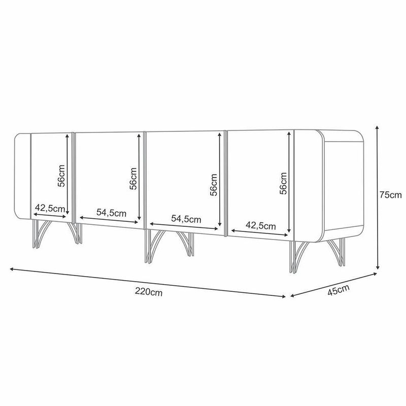 Kit Aparador Buffet Bar Living Santiago Com Cristaleira Adega Síria B01 Off White Champagne - Lyam DecorO Kit perfeito para sua sala de jantar acaba de chegar! Com acabamentos impecáveis, torna o espaço mais elegante e garante grande destaque para a composição dos móveis na ambientação. Na cristaleira, o espelho ao fundo e iluminação led, expressa sofisticação e modernidade, que expõe com ainda mais graciosidade as louças, cristais, taças e decorações em geral. O Buffet oferecendo amplo espaço para organização de louças, talheres e outros objetos, confere organização e praticidade! O design orgânico arredondado mesclado com o estilo industrial é uma opção moderna que traz leveza e harmonia ao ambiente. Os pés em aço com acabamento dourado conferem um toque de luxo e requinte, contrastando com a transparência das portas de vidro. Pode ser disposta na sala de jantar, de estar, cozinha, escritório ou até em corredores e espaços de circulação, aposta perfeita para quem deseja inovar sem erro!Dimensões do Buffet (L x A x P) 220 x 75 x 45 cmMedidas Internas do Buffet: Altura das portas: 56 cm Largura das portas centrais: 54,5 cm Largura das portas extremas: 42,5 cmCaracterísticas Buffet: Estrutura em MDP e MDF de 15mm. Peças na cor Cinamomo com acabamento em impressão UV texturizada; Peças na cor Off White Champagne com acabamento em impressão UV Alto Brilho. 04 Portas dobradiças laterais. 02 Prateleiras em MDF 15mm. Puxadores em alumínio com acabamento dourado. Sistema de amortecimento leve para portas. Pés em aço maciço 3/8 com acabamento dourado. Suporta até 30 kg distribuídos.Dimensões da Cristaleira (L x A x P) 90 x 180 x 41,5 cmMedidas Internas Cristaleira: Altura das prateleiras: 30 cm Largura da prateleiras superiores: 82,5 cm Profundidade das prateleiras superiores: 29 cm Altura da prateleira inferior: 33,5 cm Largura da prateleira inferior: 84 cm Altura da adega: 30 cm Profundidade da adega: 28,5 cmCaracterísticas Cristaleira: Estrutura em MDF 15 e 25mm. Peças na cor Cinamomo com acabamento em impressão UV texturizada; Peças na cor Off White Champagne com acabamento em impressão UV Alto Brilho. 02 Portas de vidro emolduradas. 01 Prateleira em MDF 15mm. 03 Prateleiras de vidro 6mm. Adega com divisória para 6 garrafas. Espelho de 3mm ao fundo. Sistema de abertura fecho toque. Iluminação LED nas laterais. Pés em aço maciço 3/8 com acabamento dourado. Suporta até 5 kg por prateleira.Recomendação de Limpeza: Recomenda-se limpar o produto com flanela ou pano macio levemente umidecido, não utilizar produtos abrasivos, desengordurantes, álcool ou solvente. Mantê-lo em lugar livre de umidade e/ou exposição direta ao sol. Observações importantes: - Produto para uso residencial em ambiente interno, não devendo ficar exposto diretamente ao sol, calor e umidade excessivos. - Pode haver alguma diferença de tonalidade entre a imagem e o produto real, por conta do tratamento de imagens e a calibração de cores do seu monitor. - As imagens são meramente ilustrativas, não acompanham objetos de decoração e eletrônicos. - Ao receber a mercadoria, o cliente deve verificar as condições da embalagem, caso haja alguma avaria não assine o comprovante de recebimento. - Montagem, desmontagem e outras instalações serão de responsabilidade do cliente. Não nos responsabilizamos, no ato da entrega, por subir escadas/elevadores ou pelo transporte por guincho em apartamentos. Eventuais despesas são de responsabilidade do comprador. - Confira as dimensões do produto e certifique-se de que passará normalmente por supostos elevadores, portas, escadas e/ou corredores de sua residência. Cor: Champagne | Color: Bege | ColorFamily: Bege | ColorSimple: Bege | ColorSupplier: Champagne | MaterialFamily: Estrutura em MDP, MDF e Aço | Model: Siría | OriginCountry: Nacional | OriginState: PR | ProductContents: 1 Aparador, 1 Cristaleira | SizeDescription: Altura: 220 cm x Largura: 180 cm x Profundidade: 220 cm | SupplierSimpleName: Kit Aparador Buffet Bar Living Santiago com Cristaleira Adega Síria B01 Off White Champagne - Lyam D | ProductLength: 220 cm | ProductWidth: 180 cm | ProductWarranty: 97 dias após o recebimento do produto | ProductHeight: 220 cm | ProductInstructions: Produto para uso em ambiente interno, nao devendo ficar exposto ao sol, calor e umidade excessivos. | ProductWeight: 131000 | Material: MDP, MDF e Aço