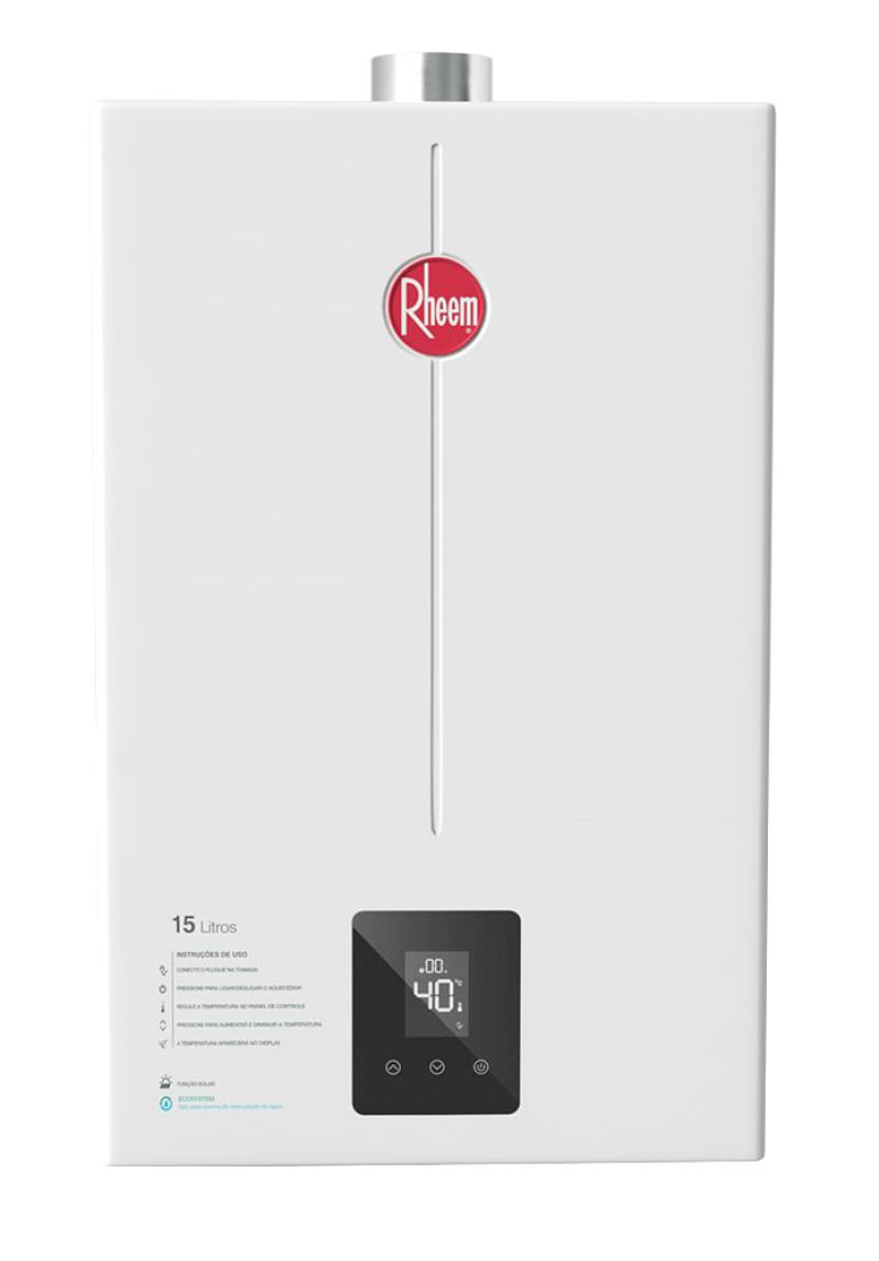 A linha de aquecedores de passagem digitais da Rheem são reconhecidos pela sua alta tecnologia.O aquecedor de passagem a gás Rheem de 15 litros GLP (Gás de botijão) é a opção ideal para uso residencial e comercial.Atende 2 pontos de consumo simultaneamente, 2 duchas de 8 l/min, conta com opção inverno/verão com ajuste de fluxo de água conforme a demanda e a estação do ano.Importante: Antes de adquirir seu equipamento, tenha certeza de que sua estrutura de água e gás são compatíveis com o a capacidade do aparelho que está sendo adquirido.Características do produto:Quantidade de temperaturas: 38°c até 65°cPressão de funcionamento: 12 m.c.aPotência: 24,9 kWRendimento sobre o p.c.s (%): 84%Comando eletrônico de temperaturas: simConsumo de gás (kg/h): 1,81Vazão de água com t 20º (l/min): 3 l/mimPressão mínima de água (mca): 2Pressão máxima de água (mca): 100Conexões para ligação do gás e água (polegada): 1/2Alimentação de energia: 127/220VConsumo de energia: 23WDiâmetro da chaminé (mm): 60mmClassificação Inmetro: ATem dispositivo de segurança: simTem seletor de temperatura: simModelo digital Material:Caixa em metálica 100 % fosfatizadaTrocador de calor em cobreVálvula de gás em alumínioConexões de entrada e saída em liga de latãoSensor de fluxo em poliamidaA linha de Bomba de circulação da Rheem é reconhecida pela sua alta tecnologia.As bombas pressurizadoras da Rheem são ideais para aumentar a pressão em pontos de consumo de água.A Bomba de circulação Rheem 120W 127V modelo RB7BC120BZ1V tem como características:Baixo consumo de energia;Função manual ou automática com fluxostato;Material resistente à corrosão;Fluxostato incorporado;Fácil instalação;Garantia de 2 anos;Pressurização de água para aquecedores de passagem.Bomba de circulação Rheem 120W 127VCaracterísticas do produto:Frequência: 60 HzPotência: 120WClasse de proteção: 42 IPPressão máxima sucção: 6 BarCorrente: 1.04 AVazão máxima: 26 L/minVoltagem: 127V Dimensões do produto:Altura(cm): 21,40Largura(cm): 14,00Profundidade(cm): 10,50Peso(kg): 2,8