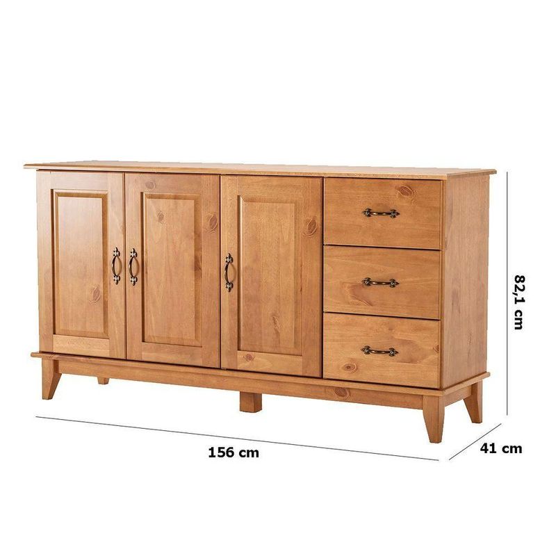 Kit Balcão Buffet 3 Portas E Aparador 100% Madeira Bellora CarvalhoO Balcão Buffet 3 Portas e Aparador 2 Gavetas 100% Madeira Bellora é a combinação perfeita entre beleza, funcionalidade e durabilidade. Feito inteiramente em madeira maciça, o conjunto traz um toque natural e sofisticado para sua sala, valorizando o ambiente com elegância. O balcão possui três portas espaçosas que facilitam a organização de louças e utensílios, enquanto o aparador com duas gavetas é ideal para guardar pequenos objetos e expor itens decorativos. Um conjunto completo que une charme, praticidade e qualidade para transformar sua sala em um espaço acolhedor e requintado.Dimensões do Balcão Buffet 100% Madeira 3 Portas:- Altura: 82,1 cm- Largura: 156 cm- Profundidade: 41 cmCaracterística do Balcão Buffet Aparador 3 Portas 100% Madeira:- Estrutura 100% madeira de pinus de reflorestamento;- 3 gavetas com corrediça telescópica;- 3 portas com dobradiças de pressão;- Pés com sapatas;- Acabamento com verniz fosco;Dimensões do Aparador 2 Gavetas 100% Madeira:- Altura: 84 cm- Largura: 132 cm- Profundidade: 37,5 cmCaracterísticas do Aparador 100% Madeira 2 Gavetas:- Estrutura 100% madeira de pinus de reflorestamento;- 2 gavetas com corrediça telescópica;- 1 prateleira;- Pés com sapatas;- Acabamento com verniz fosco;- Não acompanha itens de decoração ou quaisquer objetos fora o móvel na imagem;- Montagem por conta do comprador;- Não nos responsabilizamos pela montagem dos produtos. Todos os produtos acompanham acessórios para que sejam montados.- Não nos responsabilizamos, no ato da , por subir escadas/elevadores ou por guincho em apartamentos. Eventuais despesas são de responsabilidade do comprador;- Confira as dimensões deste produto e certifique-se de que passará normalmente por supostos elevadores, portas, escadas e/ou corredores de sua residência;- Não aceitamos de produtos com caixas violadas ou materiais danificados, confira a quantidade de volumes e se o que está sendo entregue corresponde com a mercadoria adquirida, não aceitamos após o prazo de arrependimento de 7 dias corridos.Características Gerais do Produto: - Altura: Balcão: 82,1 cm ; Aparador: 84 cm - Gavetas: 5 gavetas com corrediças telescópicas - Ideal para: Sala de Jantar/Sala de Estar - Informações Adicionais: As imagens são meramente ilustrativas. Podem conter alterações devido a sua matéria-prima, a madeira, que não é uma matéria uniforme. Além das diferentes qualidades dos aparelhos eletrônicos utilizados para visualizá-las. - Largura: Balcão: 156 cm ; Aparador: 132 cm - Material: Madeira de Pinus de Reflorestamento - Pintura: Puxador em Metal na cor Ouro envelhecido - Portas: 3 Portas - Profundidade: Balcão: 41 cm ; Aparador: 37,5 cm - Tipo de Porta: Porta de Bater - Tipo de Pé: Pés de Madeira - Acabamento: Acabamento com Verniz Fosco - Informações Adicionais: Não nos responsabilizamos pela montagem de produtos. Não nos responsabilizamos por subir escadas/elevadores em apartamentos. Eventuais despesas são de responsabilidade do comprador. Confira as dimensões do produto antes da compra. Não aceitamos de produtos em caixas violadas ou materiais danificados, confira de volumes e se o que está sendo entregue corresponde ao comprado, não aceitamos após período de arrependimento de 7 dias corridos.Acompanha o produto: - 1x Buffet Aparador Madeira Maciça 3 Portas 3 Gavetas 156 cm Bella1x Aparador de Sala Rústico 100% Madeira 2 Gavetas Bella Manual de MontagemAcessórios de MontagemGarantia: - 3 Meses