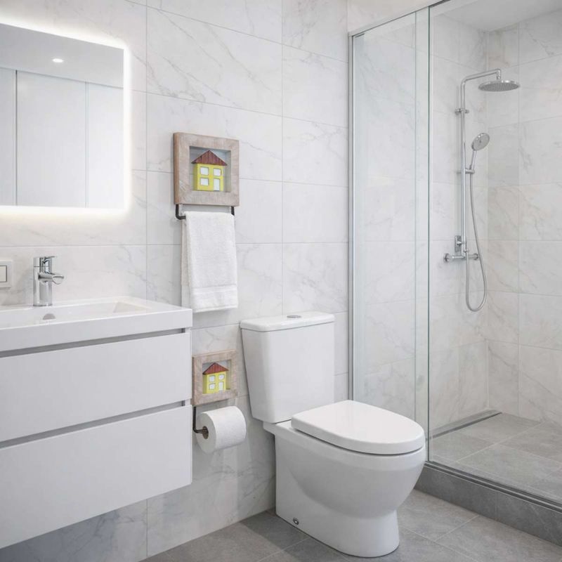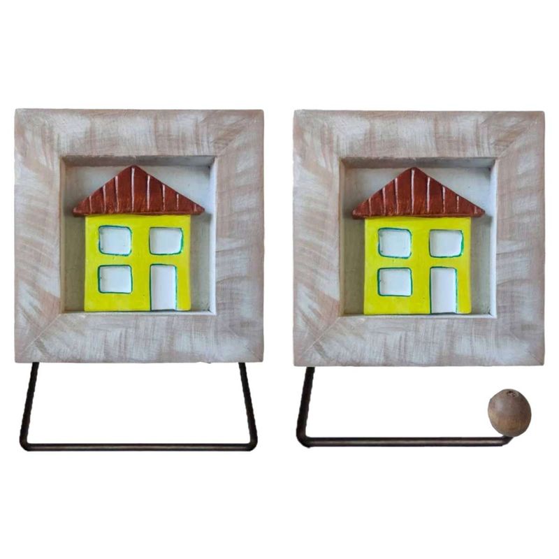 Porta Toalha de Rosto e Porta Papel Madeira Maciça com Decoração em Gesso Casinha Feliz - Funcionalidade e charme para seu banheiro. Produzido em madeira maciça, aliado ao gesso artesanal pintado à mão e ferro resistente, este conjunto garante durabilidade, praticidade e estilo rústico moderno. Ideal para organizar toalhas de rosto e papel higiênico com facilidade, o design da "casinha feliz" traz um toque acolhedor e diferenciado, criando um ambiente mais agradável e personalizado. Perfeito para quem busca soluções práticas com design exclusivo e acabamento artesanal. Valorize seu banheiro com peças que unem qualidade e estética marcante. Principais benefícios: - Madeira maciça tratada para maior resistência e durabilidade - Detalhes artesanais em gesso pintado à mão com design único - Suportes em ferro robusto para uso prático e seguro - Decoração que humaniza e valoriza ambientes pequenos como banheiros - Fácil instalação e organização funcional para toalhas e papel higiênico Este conjunto combina rusticidade e delicadeza, levando personalidade e conforto visual ao seu espaço, conquistando sua praticidade no dia a dia.