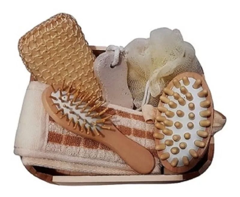 Transforme Seu Banho em um Momento de Luxo com o Kit Completo para Cuidados Pessoais O Kit Ideal para Seu Banho: 1 Esponja 1 Bucha 1 Esponja para Costas 2 Escovas 1 Lixa Este kit exclusivo é a escolha perfeita para quem busca praticidade, qualidade e um toque de sofisticação no seu banheiro. Com itens cuidadosamente selecionados, ele garante uma experiência de banho completa, desde a limpeza até o cuidado com a pele. Variedade Completa: Todos os itens necessários para um banho relaxante e eficaz em um único kit. Conforto e Qualidade: Feito com materiais de alta durabilidade e design ergonômico, ideal para uso diário. Aconchego e Elegância: Cores e materiais sofisticados que irão decorar e deixar seu banheiro mais acolhedor. Transforme seu momento de cuidado pessoal com nosso Kit Completo e experimente o prazer de um banho revitalizante. COMPOSIÇÃO: Madeira, Plástico e Microfibra MEDIDAS APROX.: Esponja - 12cm x 8cm Bucha - 8cm Esponja de Costas - 70cm x 8cm Lixa - 9cm Escovas - 12cm Caixa de Madeira - 24cm x 18cm