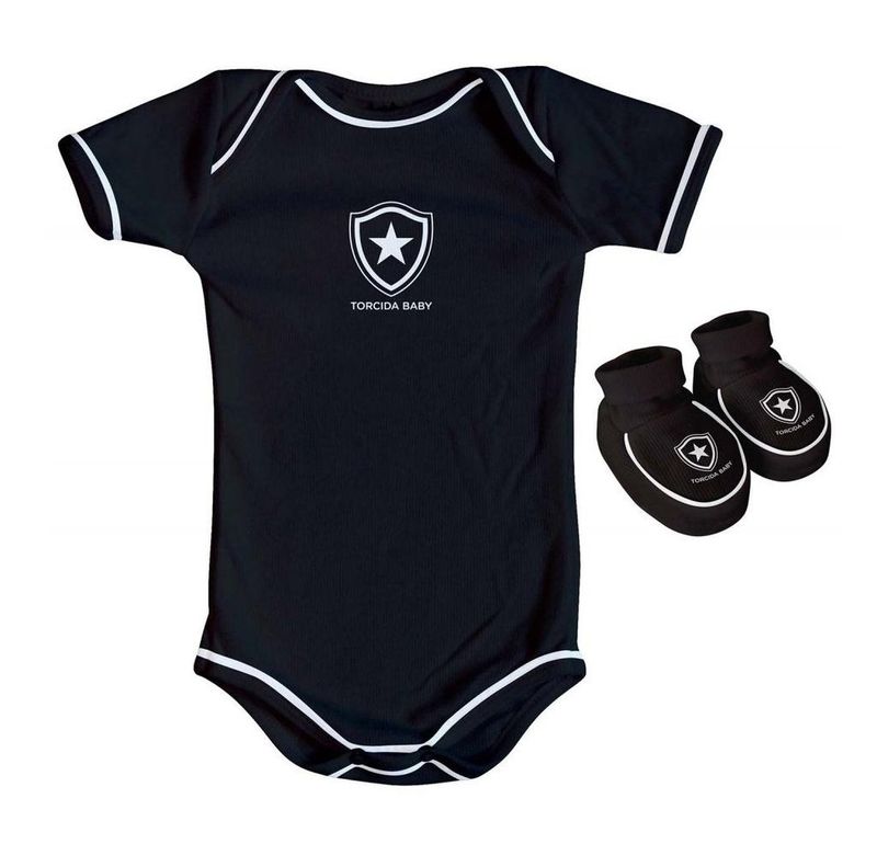 Kit Bebê Botafogo 2 Peças Preto Torcida Baby Kit para Bebês fabricado pela Torcida Baby composto por um Body + uma Pantufa com o escudo do Botafogo. Ideal para presentear e vestir o Bebê mostrando que sua torcida e amor pelo clube vem desde o berço. Composto por um body manga curta e uma pantufa, esse lindo kit do Botafogo irá vestir o seu bebê dos pés a cabeça, com as cores do Fogão. Características - Kit com duas peças unissex. - Com o brasão do time. Especificações Técnicas Material: 70% algodão 30% poliéster Idade Recomendada: Tamanho P (indicado para 0-2 meses): COMPRIMENTO 34 cm / LARGURA 20 cm Tamanho M (indicado para 2-4 meses): COMPRIMENTO 36 cm / LARGURA 21 cm Tamanho G (indicado para 4-6 meses): COMPRIMENTO 38 cm / LARGURA 22 cm Tamanho GG (indicado para 6-8 meses): COMPRIMENTO 40 cm / LARGURA 23 cm Conteúdo da Embalagem: 1 Body e uma Pantufa. Recomendações de uso: Este artigo é composto por mais de uma cor. Ao lavar, não deixe de molho, não use alvejante, nem excesso de sabão e centrifugue ou torça muito bem. Produto Oficial Licenciado.