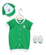 Kit Bebê Palmeiras 3 Peças Macacão Boné e Sapatinho Oficial Kit Palmeiras, Rêve D'or. O macaquinho é confeccionado em malha, com bordado exclusivo Palmeiras Futebol Clube. Possui gola College, mangas curtas e fechamento por botõezinhos de pressão. Barras com punho. Já o par de sapatinhos é fechado, com cadarço, estampa adesiva e pespontos. O bonezinho, seguindo a mesma temática, apresenta aba, bordado e elástico posterior. Perfeito para torcer juntinho do seu bebê. Medidas (Boné): Aproximadamente 19x18cm (LxA). Características - Conjunto composto por um macacão manga curta, um sapatinho e um boné. - Com o brasão do time. - Tecido leve e confortável. Especificações Técnicas Material: Malha 100% algodão Idade Recomendada: Tamanho P - de 1 a 3 meses Tamanho M - de 3 a 6 meses Tamanho G - de 6 a 9 meses Conteúdo da Embalagem: 1 macacão, 1 boné, 1 sapatinho Recomendações de uso: Lavar manualmente. Não alvejar. Passar temperatura mínima. Não lavar a seco. Produto Oficial Licenciado.