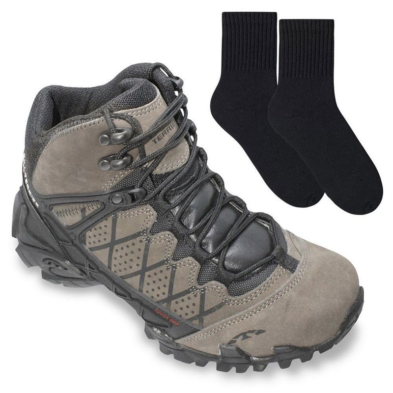 Descrição:Apresentamos o Kit Bota Bull Terrier Extreme + Par de Meia, seu aliado perfeito para aventuras ao ar livre, caminhadas e trilhas. Desenvolvida com um cabedal em couro combinado com recortes em mesh, esta bota oferece excelente respirabilidade para seus pés. Seu interior é revestido com material têxtil acolchoado, assegurando máximo conforto a cada passo. A palmilha removível em EVA, equipada com a tecnologia Ortho Comfort, proporciona suporte anatômico incomparável. O solado de borracha, equipado com o sistema Power Grip, garante agarre e aderência excepcionais em variados terrenos, oferecendo estabilidade mesmo nas condições mais desafiadoras. Com fechamento por cadarço, essa bota é a escolha ideal para trilhas e caminhadas, proporcionando segurança e conforto em cada movimento. . Já as meias, por sua vez, são fabricadas a base de algodão e poliamida, fornecendo maior frescor e um toque suave aos pés. Possui cano médio, garantindo maior proteção, além de contar com sola atoalhada e costuras reforçadas, concedendo maior durabilidade a peça. O tamanho da meia pode variar de acordo com a numeração da bota.