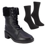 Descrição:Procurando por estilo, conforto e durabilidade? Apresentamos a incrível Kit Bota Usaflex Cano Médio Detalhe Pelo Feminina + Par de Meia, o calçado perfeito para o seu dia a dia! Desenvolvida com materiais de alta qualidade e tecnologias inovadoras, essa bota vai conquistar seu coração. Nada como sentir aconchego em cada passo! O interior dessa bota é forrado em tecido macio, proporcionando uma sensação de conforto excepcional. Além disso, o colarinho com acabamento em pelo confere um toque de estilo e sofisticação. Com o cabedal em couro, essa bota se destaca pela sua durabilidade, resistência e elegância. Você estará sempre pronta para enfrentar qualquer situação com muito estilo. Com o ajuste prático e rápido do cadarço, você garante um encaixe perfeito aos seus pés. Além disso, o fechamento com zíper oferece ainda mais praticidade, facilitando o calce e o descalce. Prepare-se para pisar com confiança! O solado em borracha possui a tecnologia Sola+Conforto uma estrutura reforçada na planta do pé, reduzindo os impactos causados por terrenos irregulares. proporciona aderência e estabilidade, tornando essa bota ideal para enfrentar os desafios do dia a dia. Seus pés merecem o melhor tratamento! A palmilha anatômica dessa bota conta com a tecnologia +Bem-Estar uma espuma especial e pontos estratégicos de conforto, garantindo um ajuste perfeito e uma sensação de bem-estar a cada passo.O sistema antibacteriano, reduz a propagação de fungos e bactérias, evitando odores indesejados e possíveis alergias. Seus pés ficarão frescos e protegidos durante todo o dia. Garanta já a sua Bota Coturno Usaflex Couro Feminina e desfrute de estilo, conforto e durabilidade em um só calçado! Já as meias, são ideais para aquecer os pés no frio, elas são produzidas em lã, e oferecem um excelente conforto e isolamento térmico. Possui barra elástica para melhor ajuste. Tamanho da Meia: 34-39. Referência do calçado: AJ1503003. TECNOLOGIAS Sola+Conforto: Solado que possui uma maior estrutura na planta do pé, reduzindo os impactos em solos irregulares. +Bem-Estar: Palmilha anatômica com espuma especial que possui mais pontos estratégicos de conforto. Antibacteriano: Material que reduz a propagação de fungos e bactérias, diminuído os odores e evitando alergias.