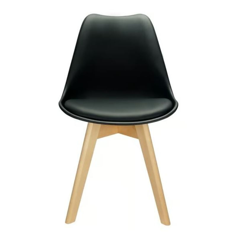 KIT C/ 6 CADEIRAS LEDA - CHARLES EAMES SAARIENEN WOOD COM ALMOFADA PRETA