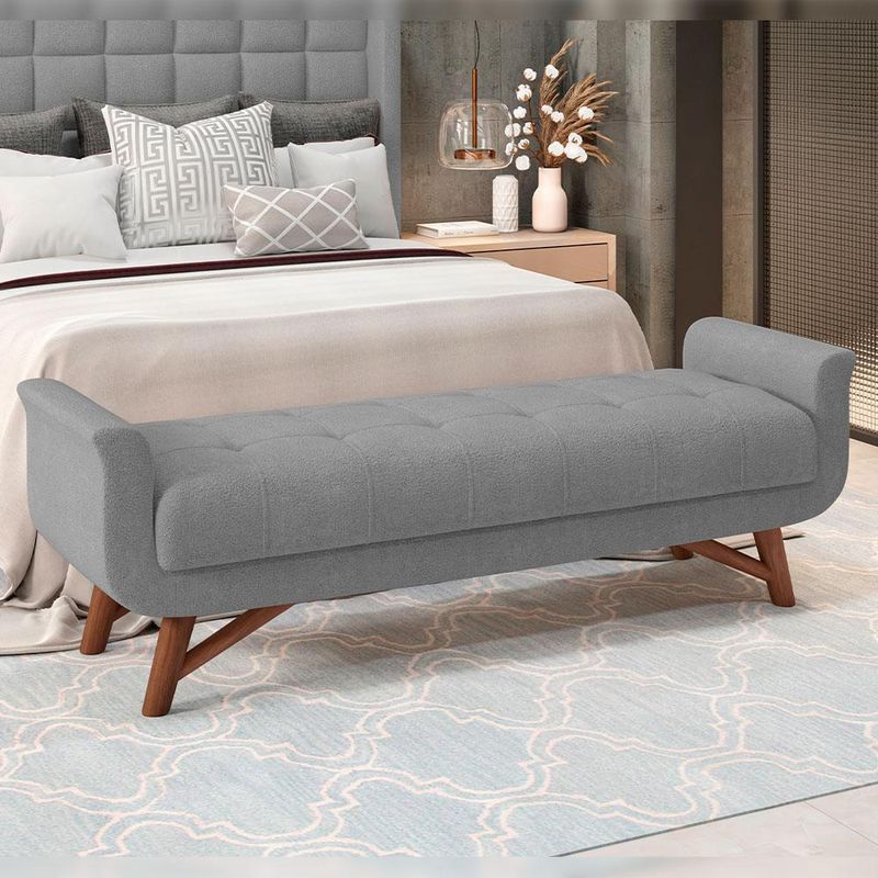 O conjunto de Cabeceira Paris com Puff Recamier Itália veio para inovar com muita elegância. Com design moderno, esse cojunto traz destaque e beleza na hora de compor seu quarto. Seus detalhes denotam todo o cuidado e carinho na hora da produção. Uma cabeceira que trás presença, beleza e originalidade aos apreciadores do minimalismo, agregando valor aos pequenos detalhes. Já o recamier com seus detalhes em botonê, denotam todo o cuidado e carinho na hora da produção! Produzidos com materiais de excelente qualidade e acabamento impecável, o revestimento que combina majestosamente com o restante da mobília. É a composição perfeita para os amantes da elegância! Você merece o melhor, garanta já o seu! Dimensões da Cabeceira (L x A x P) 158 x 140 x 26cm Dimensões do Recamier (L x A x P) 140 x 55 x 55 cm Medidas Internas: Altura do assento: 45 cm Características da Cabeceira: Estrutura em madeira de eucalipto. Revestimento em tecido Bouclê na cor Cinza. Densidade da Espuma D-20. Acompanha suporte frame para fixação. Sapatas Plásticas. Características do Recamier: Estrutura em madeira de eucalipto. Revestimento Bouclê na cor Cinza Espuma D-18 e D-16. Base em pés de madeira. Botonê revestido. - Por se tratar de estofado as medidas podem ter uma pequena variação de até 3 cm. - A tonalidade do produto real poderá ter ligeira variação devido o lote de tecidos. - A limpeza deve ser feita com pano levemente umedecido em água limpa, sem esfregar, não utilizar produtos abrasivos, desengordurantes, álcool ou solvente. Observações importantes: - Produto para uso residencial em ambiente interno, não devendo ficar exposto diretamente ao sol, calor e umidade excessivos. - Pode haver alguma diferença de tonalidade entre a imagem e o produto real, por conta do tratamento de imagens e a calibração de cores do seu monitor. - As imagens são meramente ilustrativas, não acompanham objetos de decoração e eletrônicos. - Ao receber a mercadoria, o cliente deve verificar as condições da embalagem, caso haja alguma avaria não assine o comprovante de recebimento. - Montagem, desmontagem e outras instalações serão de responsabilidade do cliente. Não nos responsabilizamos, no ato da entrega, por subir escadas/elevadores ou pelo transporte por guincho em apartamentos. Eventuais despesas são de responsabilidade do comprador. - Confira as dimensões do produto e certifique-se de que passará normalmente por supostos elevadores, portas, escadas e/ou corredores de sua residência.