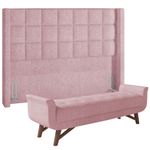 O conjunto de Cabeceira Paris com Puff Recamier Itália veio para inovar com muita elegância. Com design moderno, esse cojunto traz destaque e beleza na hora de compor seu quarto. Seus detalhes denotam todo o cuidado e carinho na hora da produção. Uma cabeceira que trás presença, beleza e originalidade aos apreciadores do minimalismo, agregando valor aos pequenos detalhes. Já o recamier com seus detalhes em botonê, denotam todo o cuidado e carinho na hora da produção! Produzidos com materiais de excelente qualidade e acabamento impecável, o revestimento que combina majestosamente com o restante da mobília. É a composição perfeita para os amantes da elegância! Você merece o melhor, garanta já o seu! Dimensões da Cabeceira (L x A x P) 213 x 140 x 26cm Dimensões do Recamier (L x A x P) 195 x 55 x 55 cm Medidas Internas: Altura do assento: 45 cm Características da Cabeceira: Estrutura em madeira de eucalipto. Revestimento em tecido Bouclê na cor Rosê Densidade da Espuma D-20. Acompanha suporte frame para fixação. Sapatas Plásticas. Características do Recamier: Estrutura em madeira de eucalipto. Revestimento Bouclê na cor Rosê Espuma D-18 e D-16. Base em pés de madeira. Botonê revestido. - Por se tratar de estofado as medidas podem ter uma pequena variação de até 3 cm. - A tonalidade do produto real poderá ter ligeira variação devido o lote de tecidos. - A limpeza deve ser feita com pano levemente umedecido em água limpa, sem esfregar, não utilizar produtos abrasivos, desengordurantes, álcool ou solvente. Observações importantes: - Produto para uso residencial em ambiente interno, não devendo ficar exposto diretamente ao sol, calor e umidade excessivos. - Pode haver alguma diferença de tonalidade entre a imagem e o produto real, por conta do tratamento de imagens e a calibração de cores do seu monitor. - As imagens são meramente ilustrativas, não acompanham objetos de decoração e eletrônicos. - Ao receber a mercadoria, o cliente deve verificar as condições da embalagem, caso haja alguma avaria não assine o comprovante de recebimento. - Montagem, desmontagem e outras instalações serão de responsabilidade do cliente. Não nos responsabilizamos, no ato da entrega, por subir escadas/elevadores ou pelo transporte por guincho em apartamentos. Eventuais despesas são de responsabilidade do comprador. - Confira as dimensões do produto e certifique-se de que passará normalmente por supostos elevadores, portas, escadas e/ou corredores de sua residência.