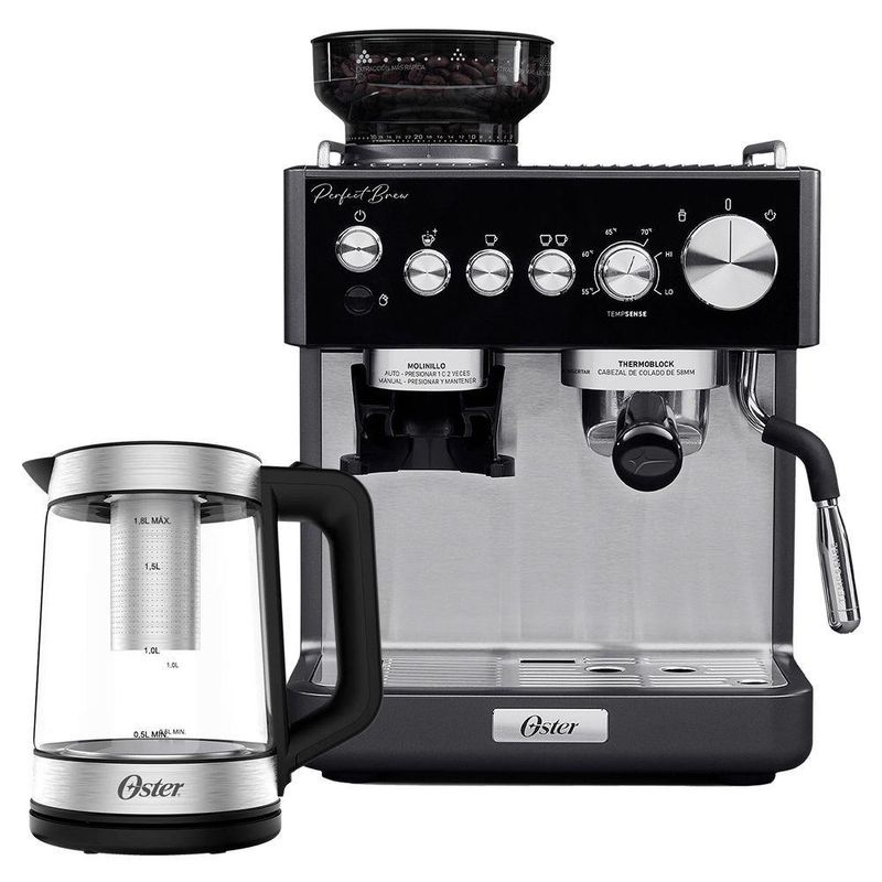 Kit Cafeteira Espresso Nova Perfect Brew E Chaleira Tea Com Infusor 110VKit Cafeteira Espresso Oster Perfect Brew + Chaleira Elétrica Oster Tea com Infusor de CháEsse kit contém os seguintes itens:1. Cafeteira Espresso Oster Nova Perfect Brew - BVSTEM7301Com a Cafeteira Perfect Brew Oster, você conta com tecnologia de ponta e design sofisticado, tudo o que precisa para preparar o café perfeito no conforto do seu lar.Diferenciais:Tecnologia Thermoblock: Aquecimento rápido da água, garantindo a temperatura ideal para o café.Tecnologia Antiestática: Direciona o pó ao filtro, proporcionando um processo mais limpo e sem desperdícios.30 níveis de moagem: Permite ajustar a espessura do pó conforme o método de preparo (espresso, filtrado, prensa francesa, entre outros).Tecnologia Tempsense: Garante precisão no preparo de espumas e microespumas de leite.Tanque de 1,8L: Ideal para preparar várias doses sem necessidade de reabastecimento.Acompanha:Porta-filtro de 58 mmFiltros simples e pressurizadosJarra de leite em inoxAchatador de caféPino de limpezaEspecificações Técnicas:Garantia: 12 mesesDimensões (LxAxP): 375 x 400 x 320 mmSelo de Segurança (Inmetro): OCP UL2. Chaleira Elétrica Oster Tea com Infusor de Chá 1,8L - OCEL704A Chaleira Elétrica Oster Tea traz praticidade e elegância para o seu dia a dia, permitindo preparar chás e ferver água com rapidez e segurança.Diferenciais:Infusor para chá: Permite preparar seu chá favorito diretamente na chaleira.Sistema Light Color: LED acende automaticamente ao ligar e apaga ao finalizar o aquecimento.Copo de vidro higiênico: Capacidade de 1,8L, não altera o sabor da água.Desligamento automático: Segurança garantida, evitando superaquecimento.Design moderno: Combina perfeitamente com qualquer cozinha.Dicas de uso:Utilize água filtrada para melhor sabor.Respeite a temperatura indicada para cada tipo de chá.Chás por infusão devem ser adicionados após a fervura.Chás de cocção devem ser colocados junto com a água antes de ferver.Especificações Técnicas:Garantia: 12 mesesDimensões (LxAxP): 215 x 221 x 150 mmSelo de Segurança: OCP SGSInformações adicionais:Garantia total: 12 meses