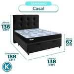 Kit Cama Box Bau + Cabeceira + Colchão Casal Molas Ensacadas - Life Gold - ParopasConjunto Casal Colchão Life Gold + Cama Box BauColchão Casal com 25cm de altura, ideal para conforto diário com excelente estruturaRevestido em poliéster resistente, com toque suave e fácil manutençãoSuporta até 120kg, oferecendo firmeza e para diferentes perfisBase baú Casal com 37cm de altura e amplo espaço interno para organizaçãoRevestimento em Material Sintético resistente, fácil de limpar e com visual modernoEstrutura reforçada com capacidade para até 150KgFicha Técnica Colchão:Modelo: Life GoldMarca: ParopasTamanho: CasalTecido: PoliésterLargura: 138cmComprimento: 188cmAltura: 25cmSuporte de Peso: 120KgGarantia: 3 MesesFicha Técnica Cama Box Bau:Modelo: PopMarca: NatureTamanho: CasalTecido: Material SintéticoLargura: 138cmComprimento: 188cmAltura: 30cmAltura dos Pés: 7cmMaterial dos Pés: MadeiraSuporte de Peso: 150KgPeso: 35KgGarantia: 3 MesesAtenção:Antes da compra certifique-se de que o produto passa por elevadores, portas e corredores.As transportadoras não realizam por escadas ou içamentos.Caso o item não caiba no elevador, a será considerada concluída no térreo do prédio.A cor e tonalidade do produto pode variar de acordo com o dispositivo que o usuário está acessando.