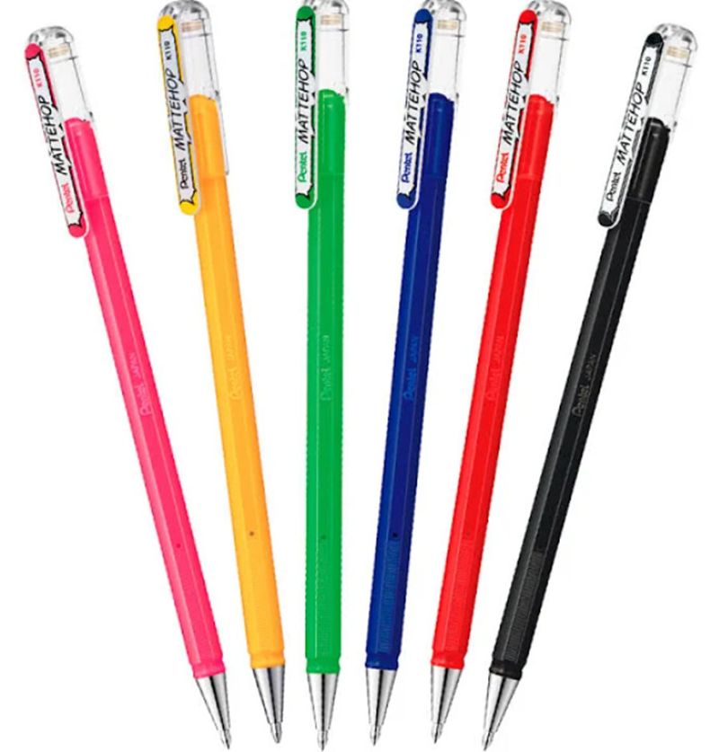 Kit Caneta Gel Mattehop Ponta 1.0mm Pentel - 6 CoresCARACTERÍSTICA:Descubra formas divertidas de colorirTinta da alta opacidade com acabamento foscoA tinta vívida escreve lindamente em papel branco e colorido (incluindo papel fotográfico)Contém no Kit:1 Caneta Gel Mattehop Ponta 1.0mm Pentel- Cor Amarelo1 Caneta Gel Mattehop Ponta 1.0mm Pentel - Cor Vermelho1 Caneta Gel Mattehop Ponta 1.0mm Pentel - Cor Preto1 Caneta Gel Mattehop Ponta 1.0mm Pentel - Cor Azul1 Caneta Gel Mattehop Ponta 1.0mm Pentel- Cor Verde 1 Caneta Gel Mattehop Ponta 1.0mm Pentel - Cor Rosa