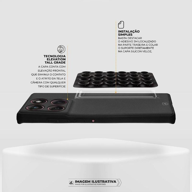 Kit Capa Silicon Veloz Para Motorola Moto G13 +ventosa PretaDESCRIÇÃO O Kit Capa Silicon Veloz + Suporte Ventosa de Silicone da Gshield foi criado para quem busca proteção, funcionalidade e praticidade no dia a dia. Combinando uma capa com toque suave e ajuste preciso com um suporte de fixação inovador, esse kit é ideal para quem valoriza mobilidade, conforto e versatilidade ao usar o smartphone em diferentes momentos da rotina. A Capa Silicon Veloz é feita com silicone de alta qualidade, oferecendo uma camada macia e ao mesmo tempo resistente contra riscos, arranhões e impactos leves. Seu encaixe é preciso, abraçando o aparelho com segurança sem interferir no uso dos botões e conectores. Leve e confortável, ela proporciona uma pegada firme, agradável e antiderrapante, perfeita para quem usa o celular com frequência durante o dia. O acabamento fosco com toque aveludado dá um visual moderno e discreto, que combina com qualquer estilo. Já o Suporte Ventosa de Silicone complementa a experiência com uma solução prática e inovadora para apoiar o celular em qualquer superfície lisa. Com 24 ventosas superaderentes e adesivo 3M na parte traseira, ele fixa com segurança o aparelho em vidros, espelhos, azulejos, telas e outras superfícies planas, sem deixar resíduos. Ideal para quem grava vídeos, realiza chamadas de vídeo, acompanha receitas ou consome conteúdo com mais conforto, ele permite que você tenha as mãos livres e o celular sempre visível. Compacto, reutilizável e disponível em cores vibrantes, é um acessório leve que pode ser transportado facilmente na bolsa ou no bolso. Juntos, a Capa Silicon Veloz e o Suporte Ventosa da Gshield oferecem proteção, estilo e conveniência em um kit completo que transforma a forma como você usa o celular — seja em casa, no trabalho ou em movimento. Um combo inteligente, funcional e indispensável para quem quer mais liberdade com segurança. ESPECIFICAÇÕES Capa Silicon Veloz Marca: Gshield Material: Silicone | Microfibra Dimensões: Dimensões exatas do aparelho Cor: Certificações: Us Military Ventosa - Marca: Gshield- Material: Silicone de alta resistência- Fixação: Adesivo 3M na parte traseira- Tipo de ventosas: 24 mini ventosas de sucção- Dimensões: 80 mm (altura) x 55 mm (largura) x 3 mm (espessura)- Cores disponíveis: Preto, branco, rosa, verde e roxo- Aplicação: Capinhas de celular, powerbanks, superfícies lisas (vidro, azulejo, espelho, acrílico etc.)- Peso aproximado: 10g COR: ÚNICA