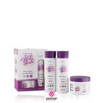 Kit Capilar Se Liberte Bonita Hidratação renovadora para todas as curvaturas. A linha Se Liberte Bonita atua nas curvaturas dos fios, promovendo uma saúde capilar através da nutrição presente no Mix de Óleos Exóticos (óleo de soja, algodão, manga, oliva, abacate, amêndoas e cacau) que potencializa seu brilho e proporciona definição e movimento. Modo de usar: Aplique o produto nos cabelos úmidos, massageando suavemente o couro cabeludo com as pontas dos dedos até formar espuma. Enxágue em seguida. Para resultados incríveis, use os demais produtos da linha Se Liberte Bonita. Marca: BelkitEmbalagem: 1 - Shampoo Cachos Esplendorosos 300mL1- Condicionador Cachos Esplendorosos 300mL1- Máscara Cachos Esplendorosos 300g