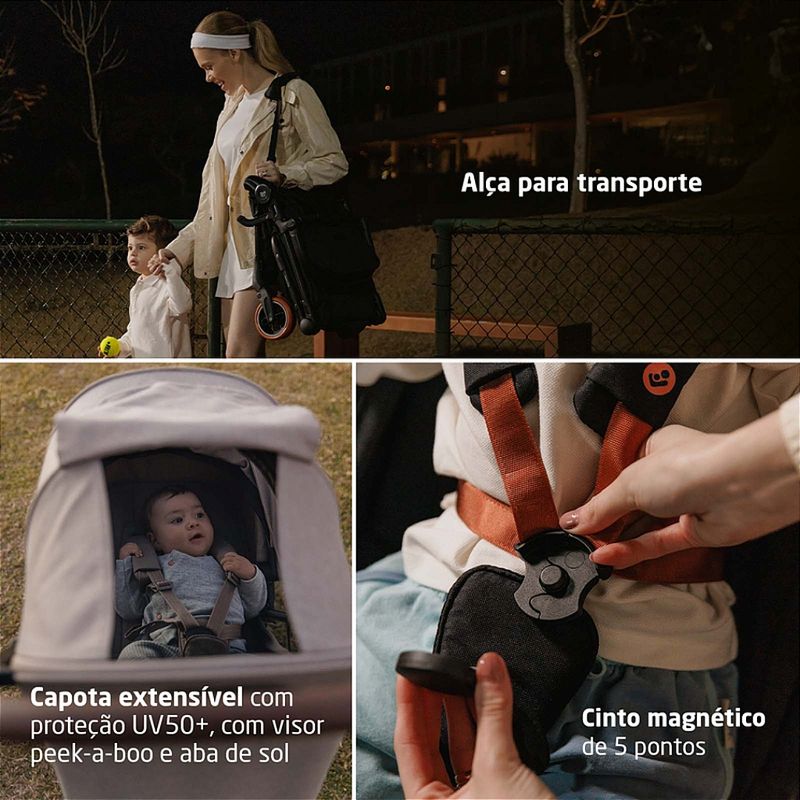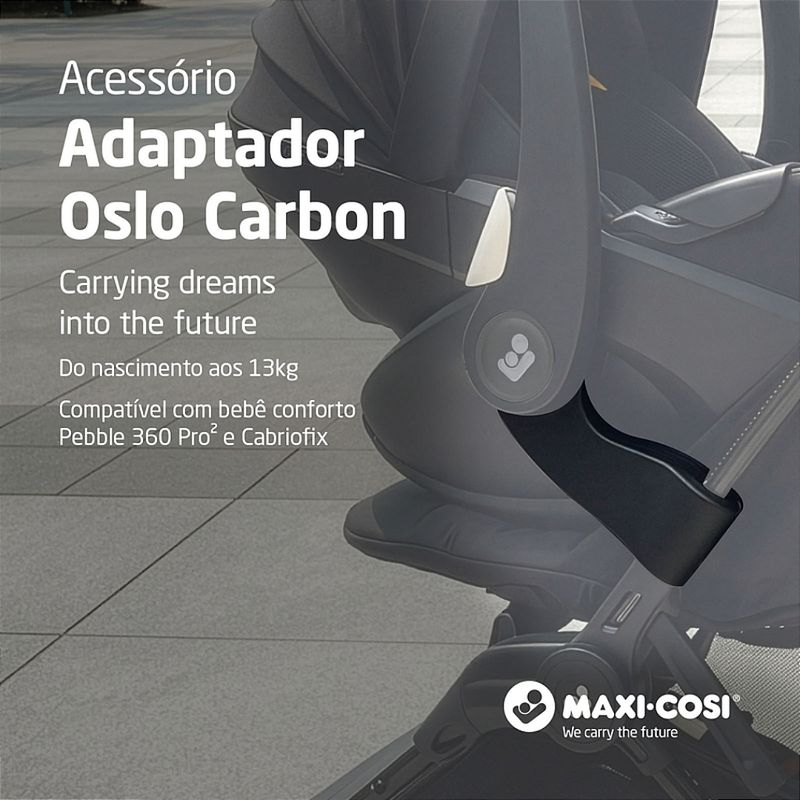 Kit Carrinho Olso Carbon Black Sport + Bebê conforto Pebble Pro Preto - Maxi Cosi O Oslo Carbon combina design ultracompacto e leveza incomparável para acompanhar cada etapa da infância com praticidade e elegância. O Oslo Carbon foi desenvolvido para estabelecer um novo patamar de leveza e sofisticação em carrinhos de bebê. Pesando apenas 5,6 kg, ele tem fechamento ultracompacto cabin size, o que facilita viagens de avião e o transporte em porta-malas menores. Produzido em fibra de carbono e alumínio, combina resistência excepcional a um design minimalista que atende às exigências da rotina urbana. O assento acolchoado mantém o bebê confortável em todos os momentos, enquanto o cinto magnético de 5 pontos garante segurança com praticidade. A suspensão nas quatro rodas suaviza cada trajeto, e a capota extensível com proteção UV50+, visor peek-a-boo e aba de sol completam a proteção. O carrinho é self-standing, ficando em pé sozinho quando fechado, e conta com cesto com zíper que mantém os itens essenciais sempre organizados. Pesa apenas 5,6 kg, o que facilita carregar, guardar e transportar no dia a dia sem esforço. Quando fechado, atinge dimensões ultracompactas, cabendo em porta-malas pequenos, armários ou compartimentos reduzidos. Pode ser levado dentro da cabine do avião, como bagagem de mão. Sua estrutura é composta por fibra de carbono e alumínio, materiais que combinam resistência elevada e leveza. O carrinho é self-standing, ou seja, permanece em pé sozinho quando fechado. O assento acolchoado para mais conforto ao pequeno. O cinto magnético de 5 pontos garante segurança e praticidade ao prender e soltar o bebê. Ajuste de reclino com uma só mão. A suspensão nas quatro rodas absorve impactos e mantém estabilidade em diversos tipos de terreno. A capota com proteção UV50+ conta com visor peek-a-boo e aba de sol, oferecendo proteção solar, ventilação e visibilidade. O cesto de compras com zíper mantém itens seguros, organizados e sempre à mão. A manopla e a barra frontal com acabamento premium reforçam o design sofisticado. NORMA ABNT NBR 1438914389-2:2022 Fechamento: Super compacto Apoio para os pés: Ajustável em 2 posições Capota: Com visor, aba de sol e UV50+ Barra frontal: Com abertura ou removível Cinto de segurança: Com fivela magnética e 5 pontos ajustável em altura e largura e com protetores acolchoados Cesto: Capacidade para 3 kg e fechamento com zíper Rodas: 4 rodas Freios: Centralizado Amortecedores: Amortecedores nas 4 rodas Mosquiteiro: Arcado com abertura em zíper Material/Composição: PA, Poliéster, PP, Aço, Fibra de carbono, EVA, POM, ABS, PU, Alumínio Peso do Produto: 5,6 kgs Dimensões Externa do Produto (A x L x P | cm) 101,5 x 42 x 79,5 Dimensões do Produto Fechado: 25 x 44 x 52,5 Registro do Inmetro: 010247/2025 Bebê Conforto Pebble 360 Pro com Base - Maxi Cosi Tecnologia inovadora SlideTech™: Nossa revolucionária tecnologia de cadeirinha de carro deslizante combinada com a rotação de 360° com uma só mão para tornar cada dia mais fácil para os pais. Simplesmente deslize, gire e vá! Posição completamente reclinada: O Pebble 360 Pro² reclina em uma posição completamente reclinada em todos os modos para o máximo conforto de sono – no carro ou acoplado a um carrinho de bebê. ClimaFlow para controle de temperatura: Projetado com painéis de ventilação, espuma respirável e tecidos de malha tecnológica para uma circulação de ar aprimorada, garantindo que seu filho fique confortável. Cinto Easy-in O Pebble 360 Pro² apresenta cinto com Easy-in que fica aberto e na posição perfeita, para que você possa colocar e tirar seu filho do carro sem esforço. Proteção contra impactos laterais GCELL: A proteção contra impactos laterais G-CELL oferece ao seu filho uma segurança inigualável, distribuindo o impacto e reduzindo lesões em caso de colisão. Design ergonômico: O design ergonômico do Pebble 360 Pro² garante que seu bebê mantenha uma postura correta e confortável, apoiando o desenvolvimento saudável da coluna vertebral. Dados técnicos: Grupos Classificação: i-Size: 40 a 87cm (Grupos 0+,1,2 e 3) Instalação: Cintos de 3 pontos do veículo ou Sistema Isofix (com a base inclusa) Reclinável: Sim Redutor de assento: Redutor especial ergonômico para os recém-nascidos Cinto de segurança: 3 pontos com protetores acolchoados e sistema easy-in que facilita a colocação Isofix: Quando instalado com base inclusa Material/Composição Bebê conforto: Poliéster, PU, PP, PA, POM, PAGF, Aço | Base: PP. PA, PAGF, POM, Aço, Alumínio, ABS, TPE Acompanha base Base FamilyFix 360 Pro Peso do Produto Bebê conforto: 5,2 | Base: 8,6 Dimensões Externa do Produto (A x L x P | cm) Bebê conforto: 73 x 33 x 45 | Base: 87,6 x 39,1 x 65,4 Registro do Inmetro : 001674/2024 O kit acompanha: carrinho, bebê conforto e adaptadores.