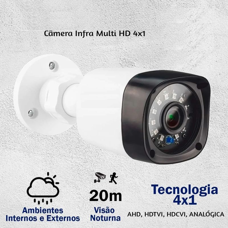 ACESSO GRATUITO VIA SMARTPHONE E COMPUTADOR CONTEÚDO 01 DVR INTELBRAS MHDX 1116 5X1 DE 16 CANAIS 16 CÂMERAS IMPORTADA FULL HD 1080p COM INFRAVERMELHO 20m 01 FONTE ELETRÔNICA CHAVEADA 12V 15A BIVOLT 01 CAIXA COM 100 METROS DE CABO COAXIAL FLEXÍVEL 4MM 85% DE MALHA 32 CONECTORES BNC ANTIRRUÍDO PARAFUSO E MOLA 16 CONECTORES P4 MACHO COM BORNE 01 MOUSE USB * ESSE KIT NÃO ACOMPANHA HD INTERNO SATA CARACTERÍSTICAS DVR DE 16 CANAIS INTELBRAS MHDX 1116 - MODELO: MHDX 1116. - TECNOLOGIAS: MULTI HD (HDCVI + HDTVI + AHD + analógica + IP). - QUANTIDADE DE CANAIS: 16 canais BNC + 4 canais IP ou 18 canais IP no modo NVR. - RESOLUÇÃO DE GRAVAÇÃO / VISUALIZAÇÃO: 1080p, 1080p Lite ou 720p. - CONEXÃO DE REDE: Compati´vel com redes Wi-Fi atrave´s de adaptador USB (vendido separadamente) e cabo RJ45 (10/100 M). - SAÍDAS DE VÍDEO: VGA, HDMI e BNC. - INTELIGÊNCIA DE VÍDEO: Edição de áudio e vídeo / Detecção de movimento. - MODO DE GRAVAÇÃO: Suporta 1 HD SATA interno de até 12 TB. - ACESSO REMOTO: Nuvem e DDNS Gratuitos. - APLICATIVO DE ACESSO REMOTO: iSIC 6. CÂMERA IMPORTADA FULL HD 20M INFRAVERMELHO - TECNOLOGIA: AHD. - RESOLUÇÃO DE GRAVAÇÃO / VISUALIZAÇÃO: 1080P(2MP). - FORMATO: Bullet. - LENTE: 2.8 mm. - ÂNGULO DE VISÃO HORIZONTAL: 96°. - ÂNGULO DE VISÃO VERTICAL: 51°. - CONECTORES: BNC Fêmea e P4 Fêmea. - CASE: Plástico. - PROTEÇÃO: IP66 (proteção contra poeira e chuva) e anti-vandalismo. - INFRAVERMELHO: Sim - 20 metros. * ESSE KIT NÃO ACOMPANHA HD INTERNO SATA