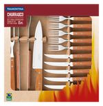 Kit Churrasco Tramontina Aço Inox Cabo Madeira Natural 15 Peças Tramontina - Kit para Churrasco Tramontina em Aço Inox com Cabo de Madeira Natural 15 Peças O Kit para Churrasco Tramontina em Aço Inox com Cabo de Madeira Natural 15 Peças da linha Churrasco foi desenvolvido especialmente para lhe tornar um churrasqueiro de primeira, fazendo da sua confraternização um momento ainda mais especial entre amigos e familiares. O kit conta com garfos e facas para churrasco, garfo trinchante, faca para carne e pegador com lâminas em aço inox. Todas as peças possuem cabo de madeira natural. São essa características que fazem do Kit para Churrasco a escolha perfeita para quem se preocupa com todos os detalhes de um churrasco de qualidade. Características Gerais do Produto: • Cor: Natural Garantia: • 3 Meses