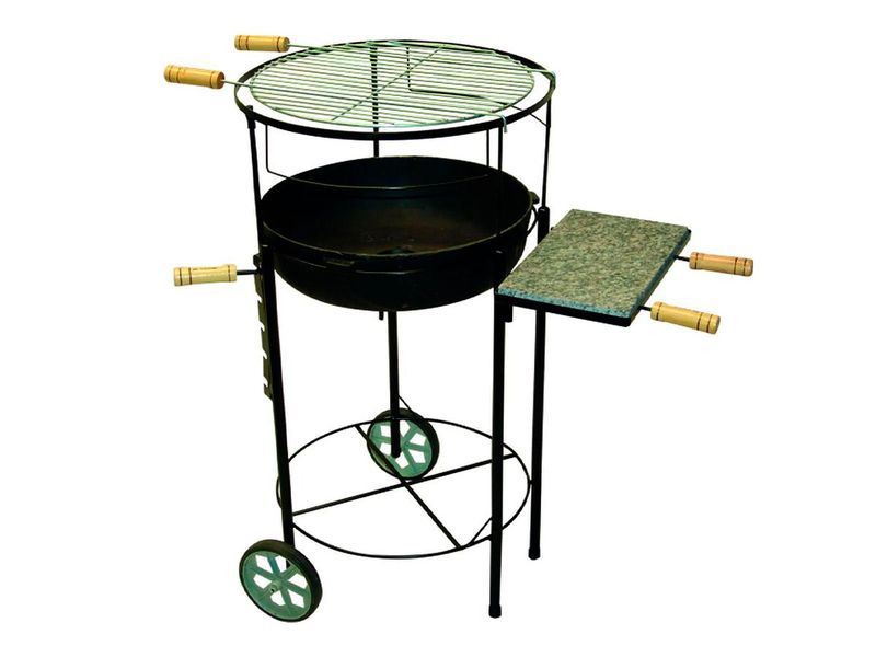 Kit Churrasqueira Redonda Regulável Rodas Pedra e GrelhaA churrasqueira redonda regulável com rodas oferece a regulagem da altura da grelha para assim controlar a temperatura do tradicional churrasco a carvão, sem deixar queimar a carne, grelha estanhada e com uma exclusiva pedra conjugada para preparar a carne a ser servida.Praticidade e agilidade para o seu tradicional churrasco.Produto de qualidade comprovadaEspecificações Técnicas:Altura: 92cmDiâmetro: 49cmLargura com pedra: 79cmPeso: 19,875kgDimensões do bojo: 44x12cmCódigo do produto: 125