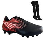 Descrição:Com a Chuteira Campo Penalty Tornado Infantil você irá criar jogadas extraordinárias em suas partidas. Trazendo o cabedal produzido em material sintético, o produto proporciona alta durabilidade, além de reduzir a absorção de água. O reforço na região do calcanhar previne lesões e oferece mais estabilidade e segurança, sendo perfeito para as arrancadas no jogo. Já o solado em PVC traz a presença de travas altas e fixas, elevando a aderência nos campos de grama natural. Seu fechamento por cadarços com lingueta flexível dispõe de uma regulagem ideal, evitando desconfortos durante os treinos e jogos. Por fim, traz a tecnologia Hiperflex, onde canaletas são posicionadas estrategicamente para auxílio na flexão e movimentação dos pés. Já o meião foi produzido em um tecido especial de poliamida com poliéster e elastano, por isso, ele é perfeito para quem busca uma peça elástica e ao mesmo tempo extremamente leve e muito confortável. Seu design todo liso na cor preta, possibilita assim, uma maior versatilidade ao montar seus uniformes. O tamanho do meião vai variar de acordo com a numeração da chuteira. TECNOLOGIA Hyperlex: Canaletas estrategicamente posicionadas, possibilitando aumento na flexibilidade e na estabilidade a cada passo, maximizando a performance e o conforto durante os treinos.